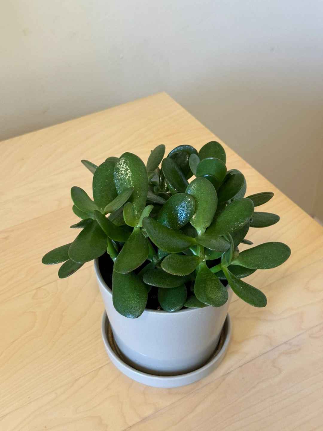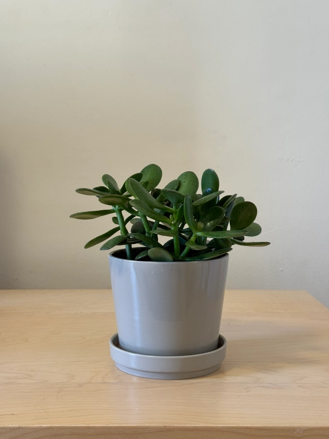 Bring timeless charm and good fortune into your home with this lush Jade Plant ⨠đą Plant â˘â Jade Plant (Crassula ovata â thick, glossy, deep-green leaves) â˘â â Healthy, vibrant, and grown with love â˘â â Thrives in low to medium light â ideal for indoor spaces 𪴠Pot & Saucer â˘â â Material: High-quality stoneware â˘â â Scratch-resistant & easy to clean (wipe with damp cloth) â˘â â Size: 13cm height Ă 15cm width â˘â â Suitable for both indoor & outdoor use đ Soil â˘â â Planted in premium potting mix for optimal growth â˘â â Provides excellent drainage and root health