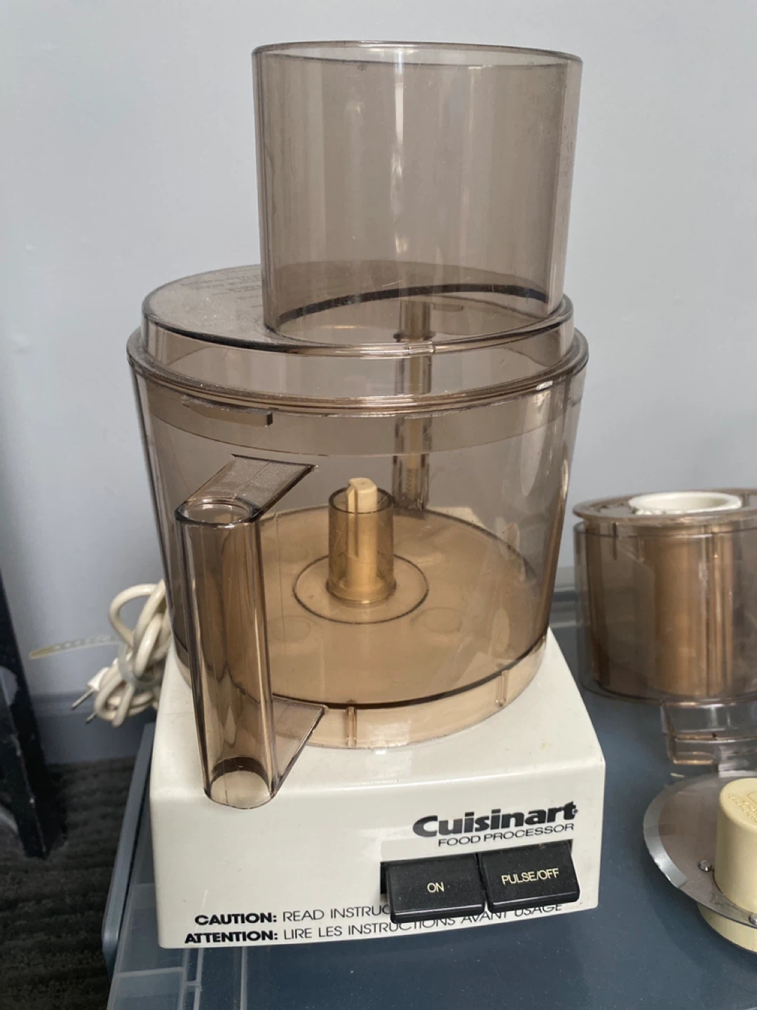 Buy & SellCuisinart Food Processor with bladesCuisinart Food Processor with blades$20Includes a food processor bowl with lid, a chopping blade, and a shredding disc. The discs are labelled 'medium'. Very functional.BrandCuisinartWHERE TO MEET3rd Avenue & CypressView MapSELLERverifiedBrad GKitsilano52441 reviews0 chats·0 favorites·5 viewsSEND CHAT TO SELLERHi Brad G! I’m interested in your listing.Hi Brad G! I’m interested in your listing.Get the Karrot app to chatSign In to chat