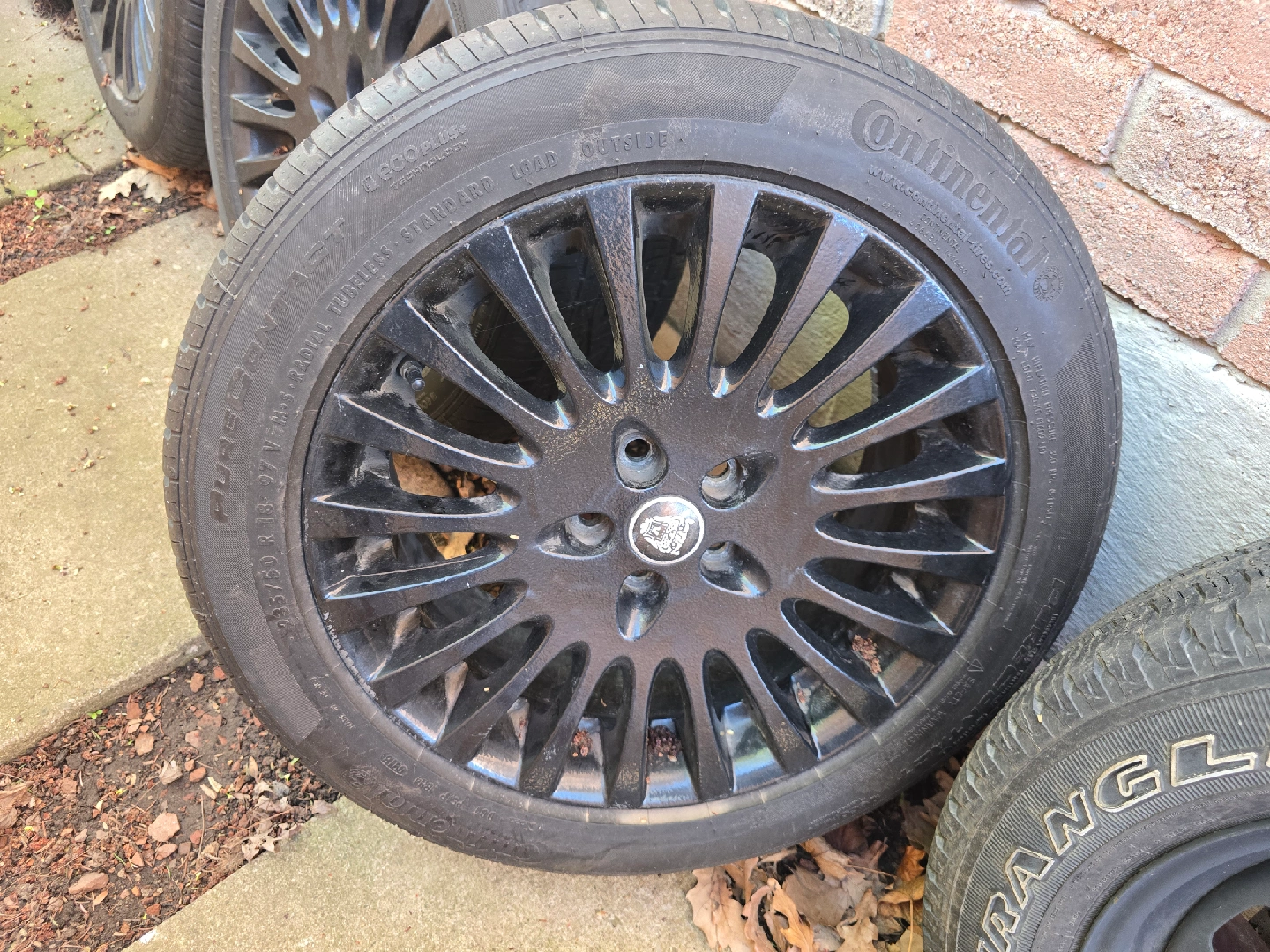 10Selling a set of Jaguar oem 18 inch wheels with Continental tires. The tire size is 235/50 R18. They're in good condition and ready to be put on your car! 5x120
