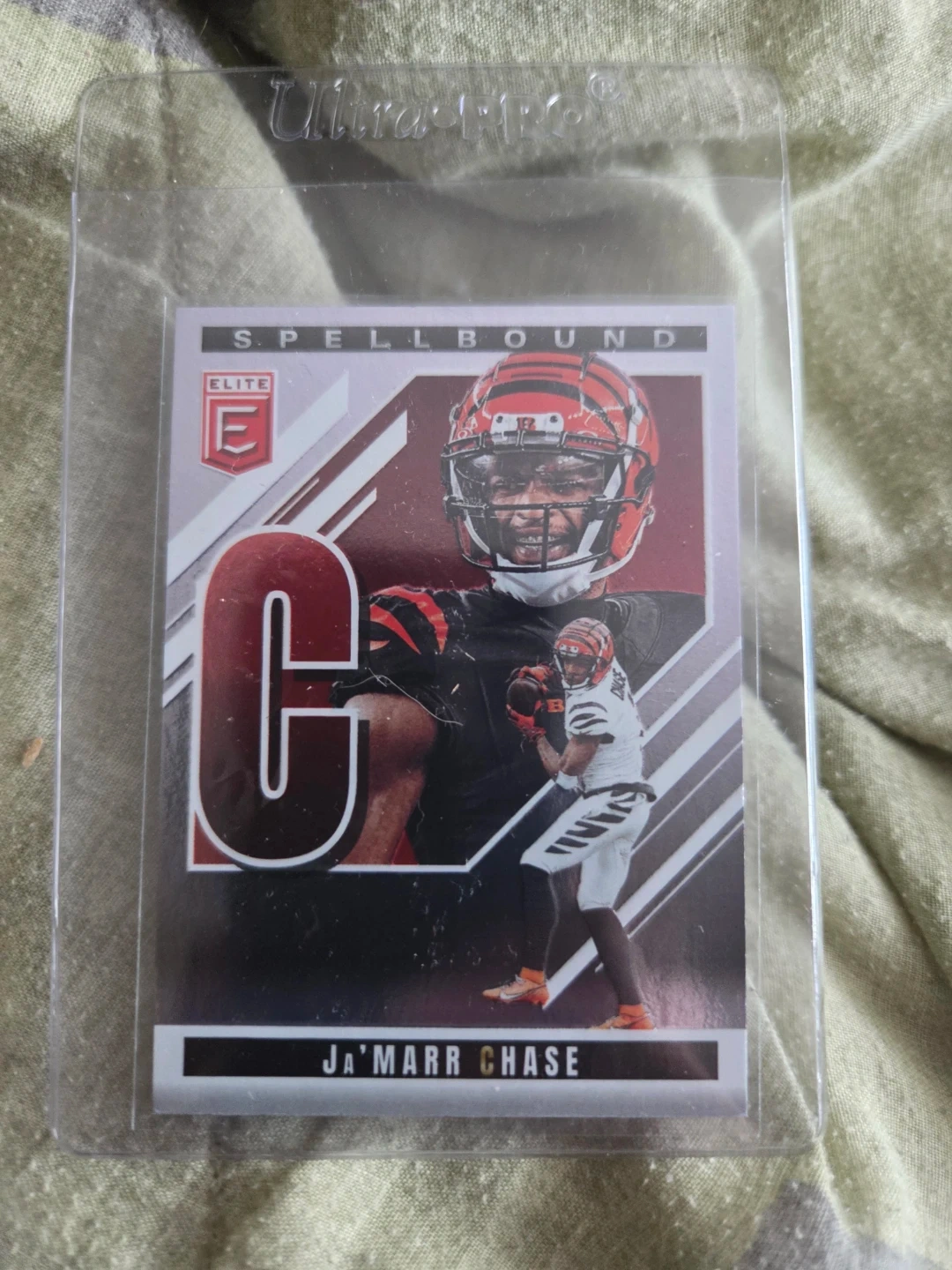 63Selling a Ja'Marr Chase Spellbound Elite football card! It's in great condition and comes in a protective case. A must-have for any Bengals or football card collector!
