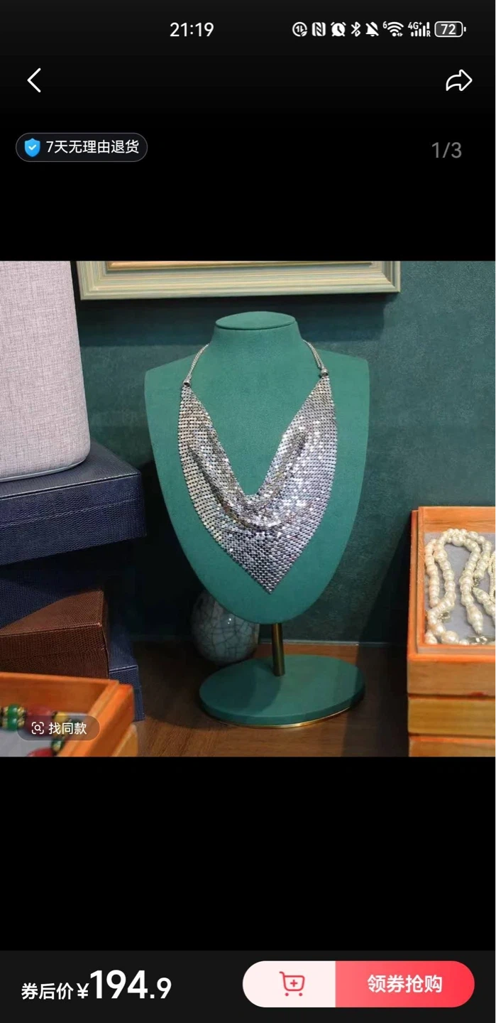 A dazzling silver mesh necklace with a dramatic V-shaped drop. It's designed with a sparkly, layered effect. This statement piece adds instant glamour to any outfit!