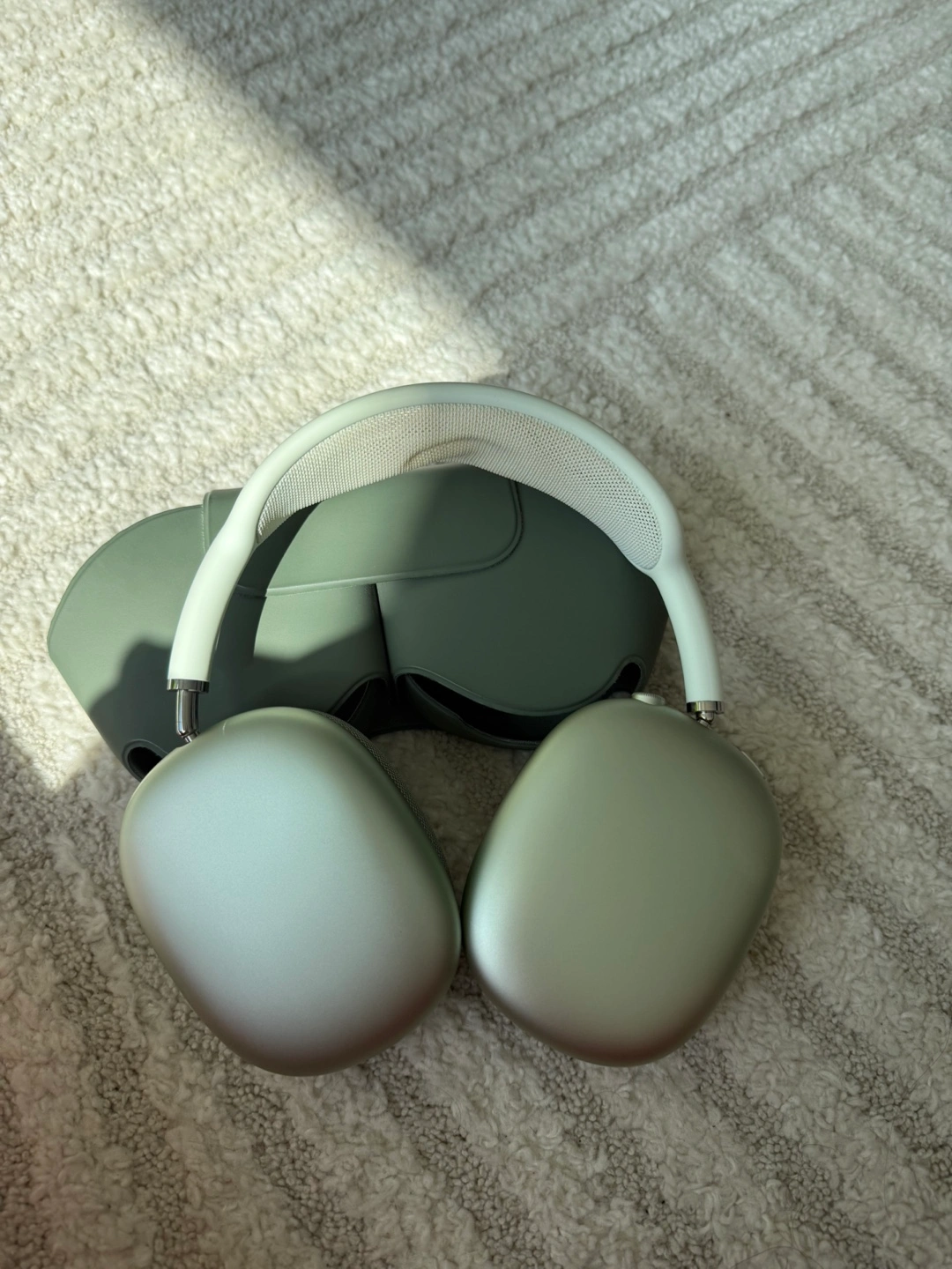 Selling a pair of Apple AirPods Max in green. They are in great condition and come with their case. These headphones are known for their excellent sound quality and comfortable fit. Perfect for listening to music or podcasts on the go!