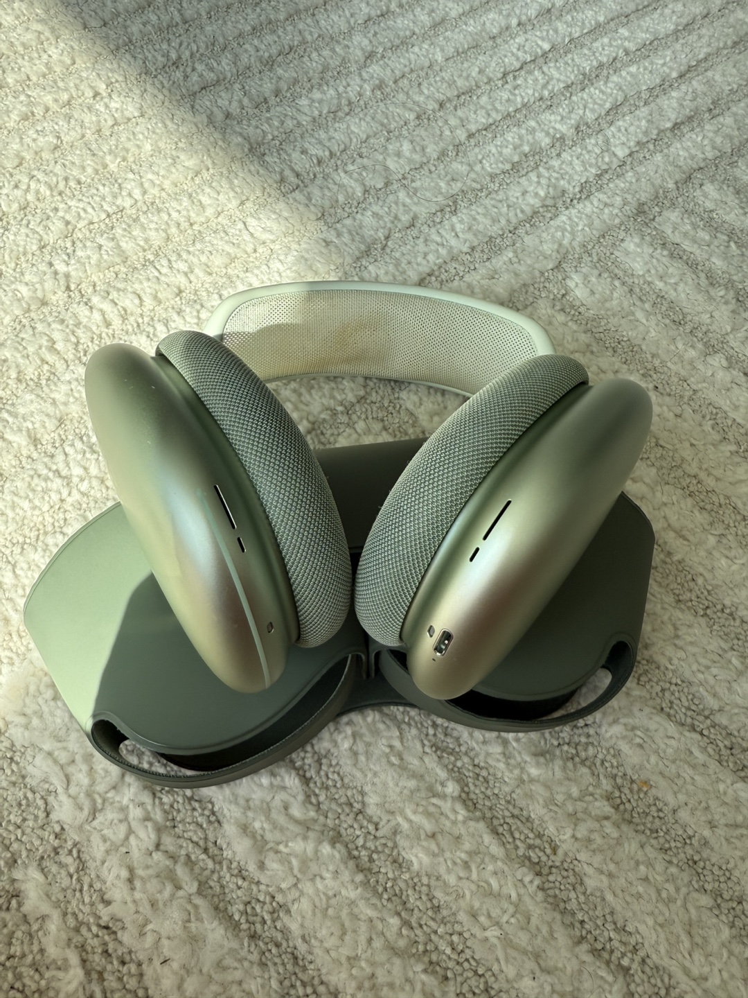 Selling a pair of Apple AirPods Max in green. They are in great condition and come with their case. These headphones are known for their excellent sound quality and comfortable fit. Perfect for listening to music or podcasts on the go!