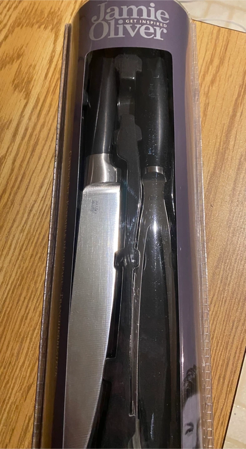 26I'm selling a brand new Jamie Oliver Carving Set, still in its original packaging! It includes both a carving knife and a carving fork, perfect for your next roast dinner. Get inspired in the kitchen!
