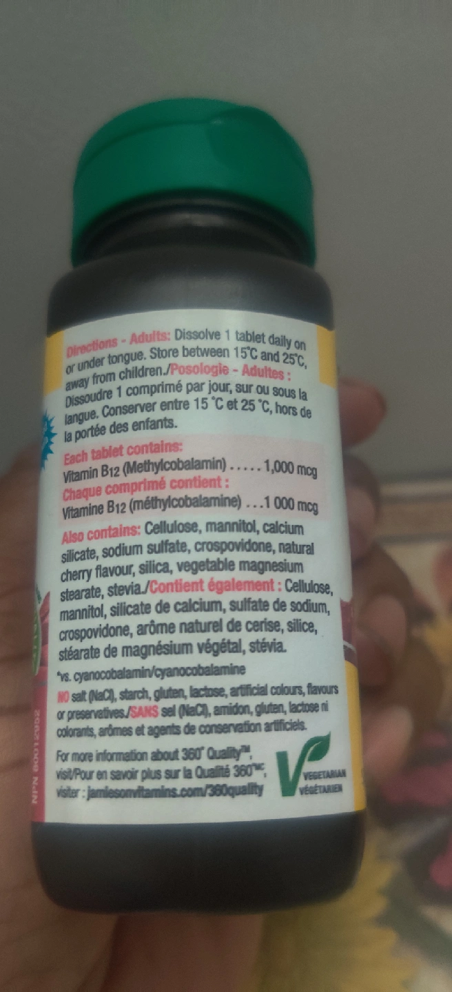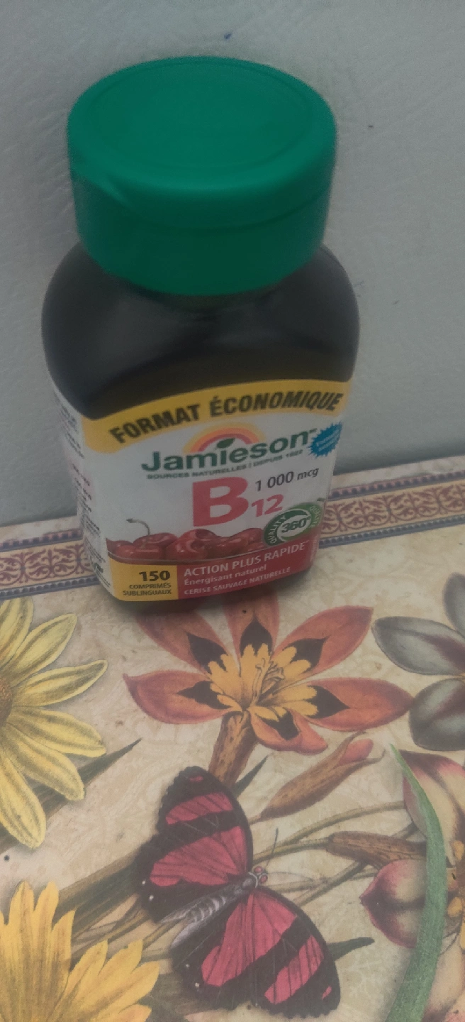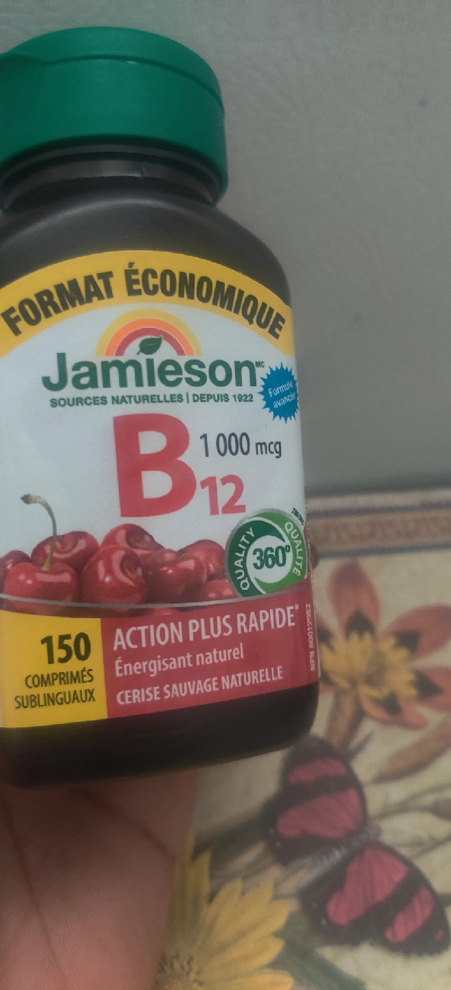 1000+Selling a bottle of Jamieson B12 1000 mcg sublingual tablets. This is the 'Action Plus Rapide' formula with natural wild cherry flavour. The bottle contains 150 tablets. Expiry date is in the future, so you have plenty of time to use them!
