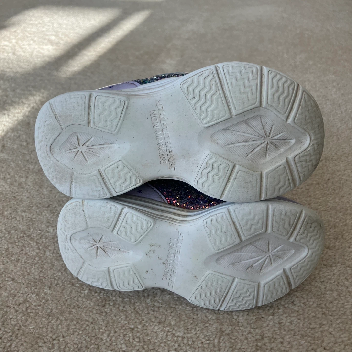 Very sparkly Skechers S-Lights toddler sneakers! 7 of the 8 lights in great working order, the last one works periodically….