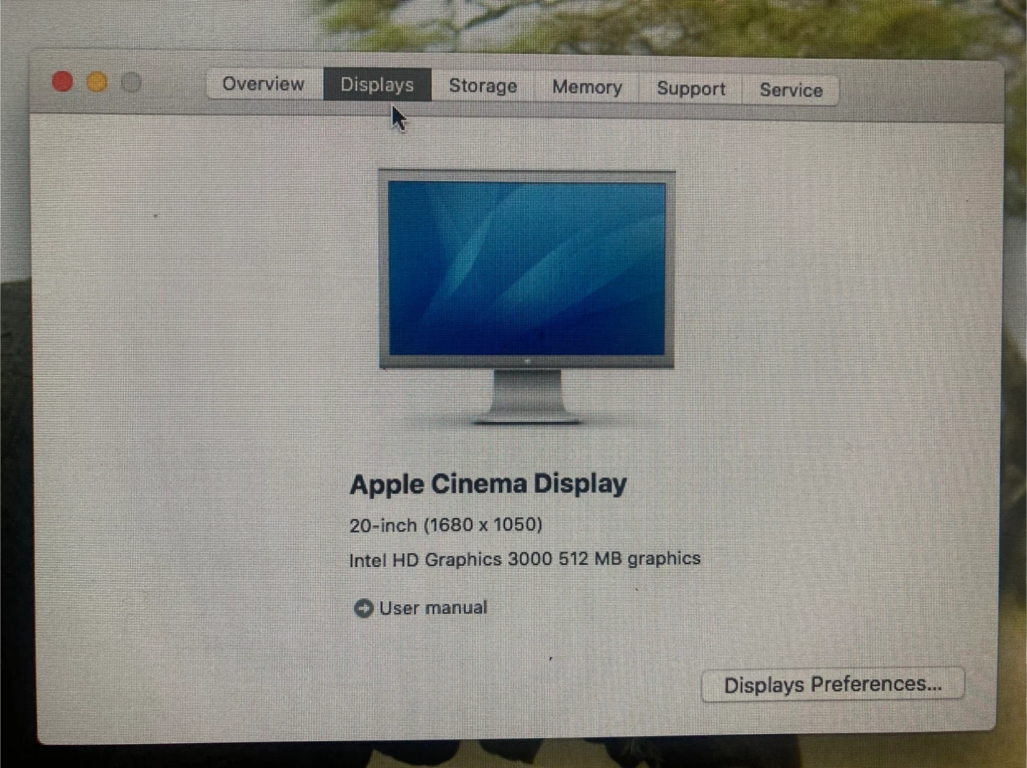 Selling an Apple Mac Mini (Mid 2011) with an Apple Cinema Display (20-inch). The Mac Mini has a 2.3 GHz Intel Core i5 processor, 8 GB of 1333 MHz DDR3 memory, and Intel HD Graphics 3000 512 MB. It also has a 500 GB SATA Disk. The Apple Cinema Display is a 20-inch (1680 x 1050) display with Intel HD Graphics 3000 512 MB graphics. Without a mouse π Pick up only