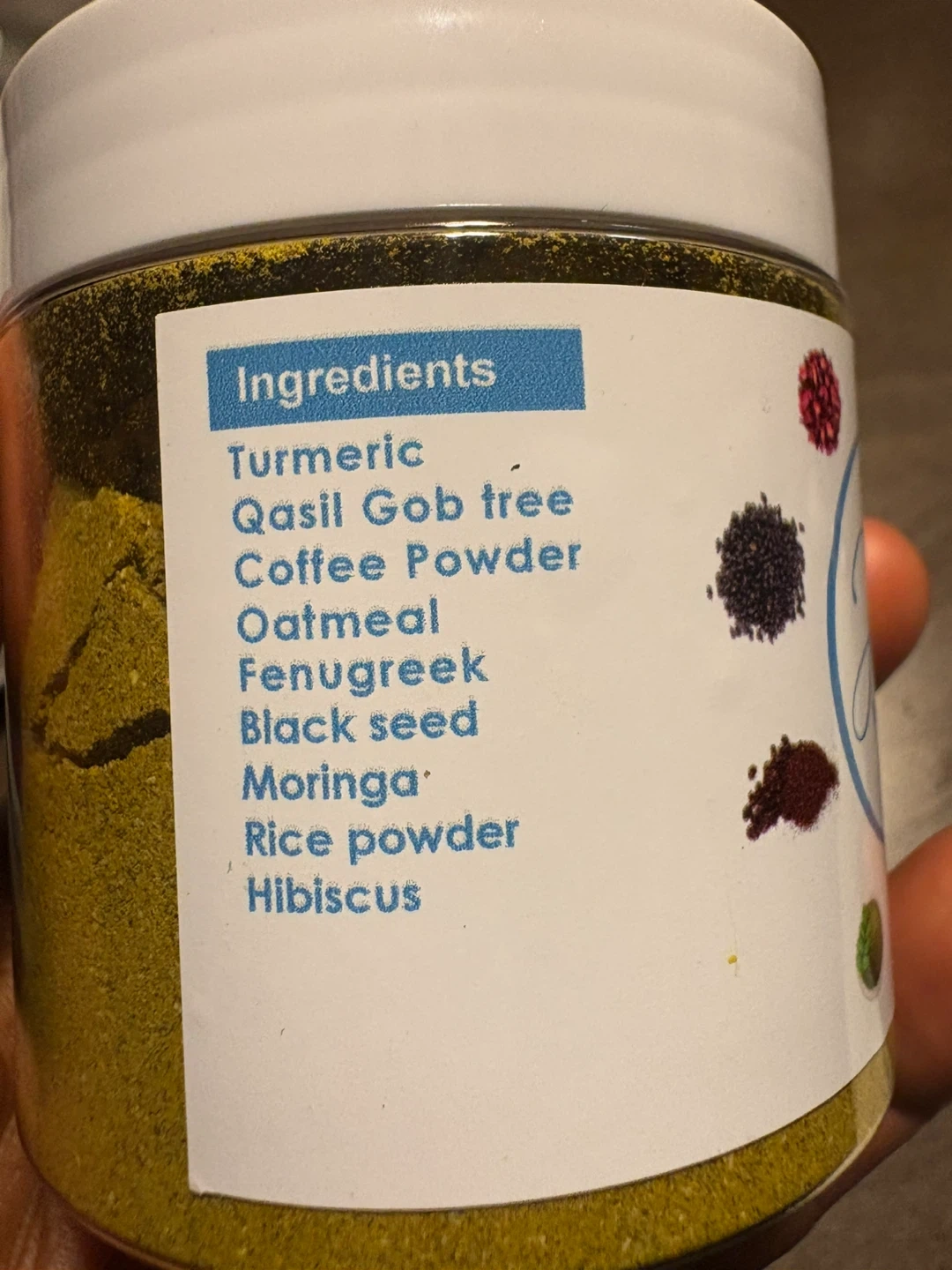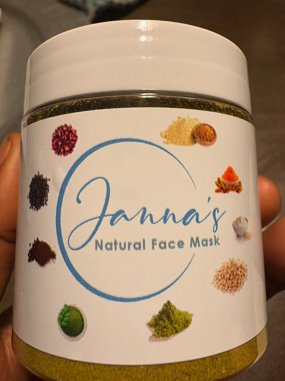 81Selling a Janna's Natural Face Mask! It includes ingredients such as turmeric, oatmeal, fenugreek, black seed, moringa, rice powder, and hibiscus