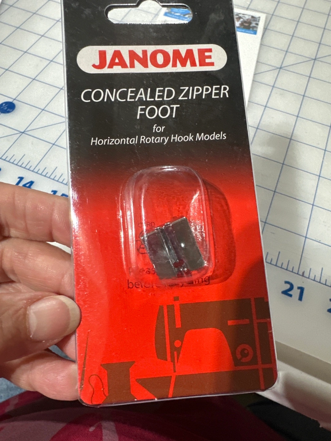 Selling a brand new Janome Concealed Zipper Foot! It's designed for horizontal rotary hook models. Makes adding zippers to your projects a breeze