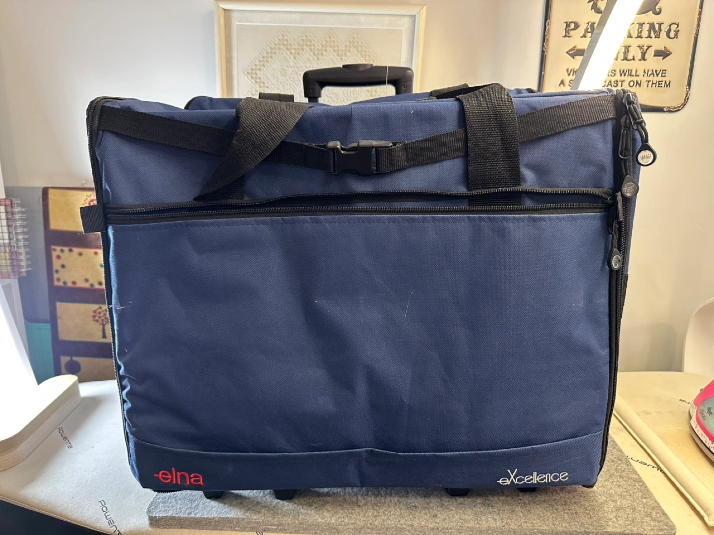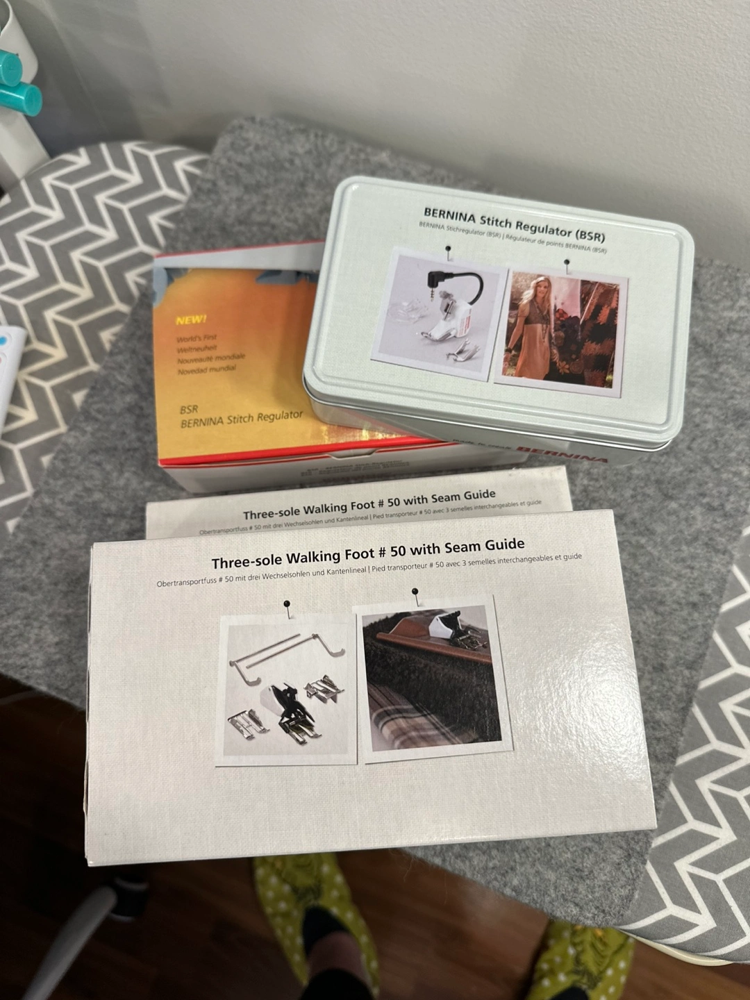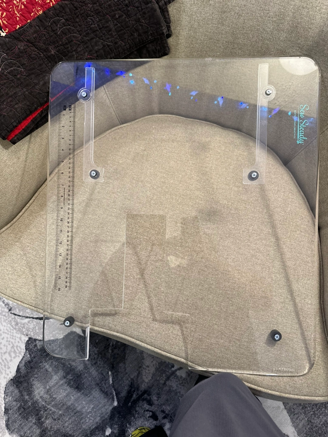 Janome Skyline S5 sewing machine. Includes instruction manual, quilting kit, accessories, carrying case, and Sew Steady quilting ruler. Excellent condition.