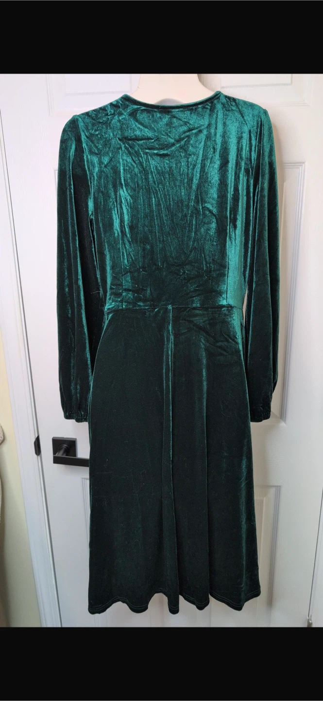 Elegant emerald green velvet wrap dress with long sleeves. It's a flattering A-line silhouette that hits above the knee. This dress is made from soft velvet material. It's suitable for evening events or special occasions!