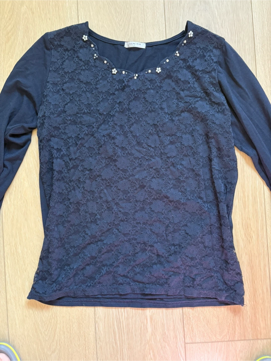 Japan Navy Blue Lace Long Sleeve Top medium