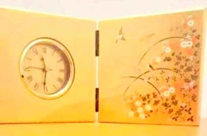 65Yamanaka-Nuri Folding Screen Clock, also known as a Byobu Clock, with a Sakura in The Stream design. Analog clock Folding screen (Byobu): Acts as a decorative stand and backdrop, adorned with Traditional Japanese Lacquerware (Yamanaka-nuri) and maki-e techniques. Sakura design: Features a Cherry Blossom (Sakura) and stream motif, symbolizing Spring and the beauty of Nature. Materials: Wood, Lacquer & Gold Leaf Excellent Condition Please check out my other posts!