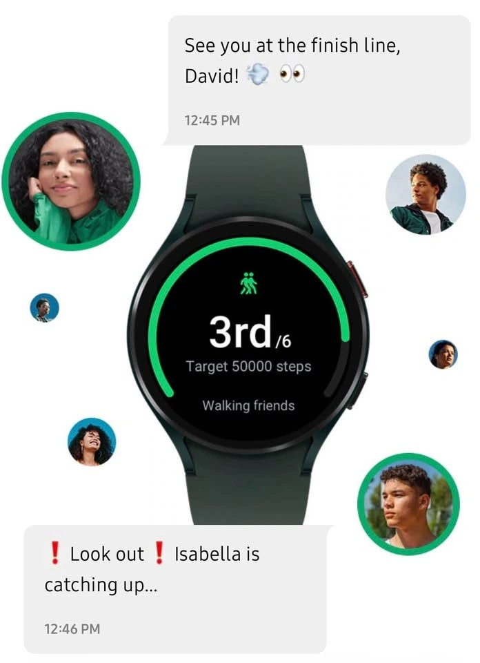 Great smartwatch with a round face and interchangeable bands. It has a 1.4-inch Super AMOLED display and tracks health metrics like heart rate, blood oxygen, and body composition. Supports Bluetooth, Wi-Fi, NFC, and GPS. Has a lightweight aluminum body with 50m water resistance. Runs on Wear OS with Google app integration and has 16GB storage. Battery life is 1.5–2 days.