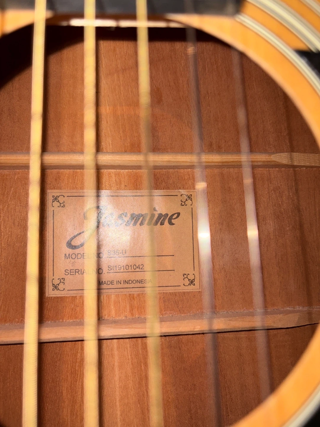 65Selling a Jasmine S35-0 acoustic guitar. It's in great condition and ready for a new home. Great for beginners or anyone looking for a reliable acoustic guitar Capo included