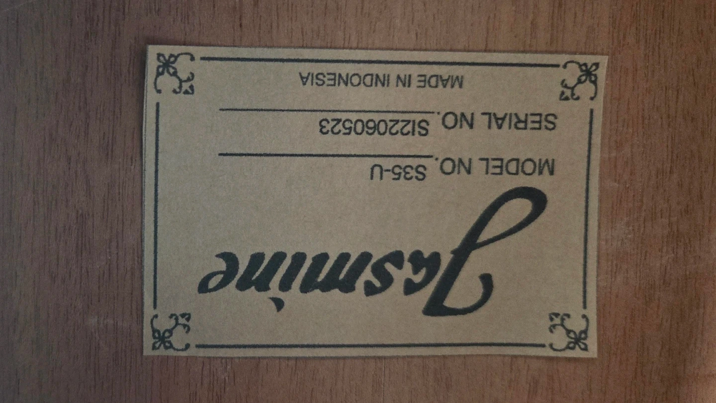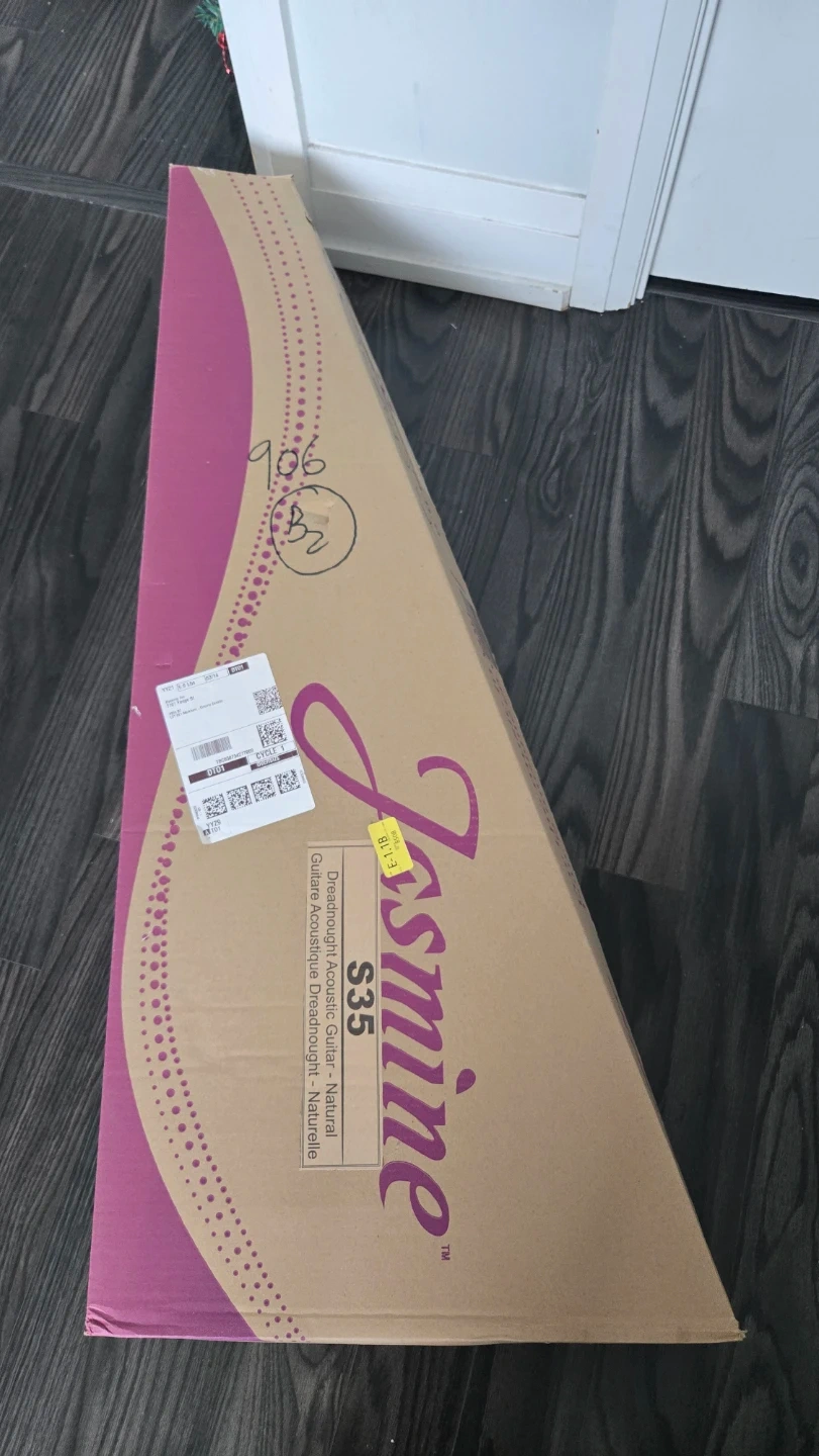 70Selling a Jasmine S35 Dreadnought acoustic guitar in natural finish. It's still in its original box! The box indicates it's a Dreadnought Acoustic Guitar - Natural. Perfect for someone looking to start playing or upgrade their current instrument