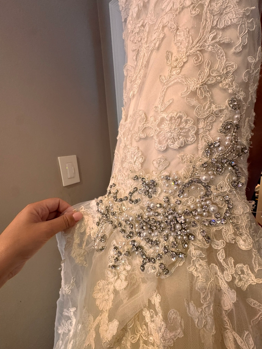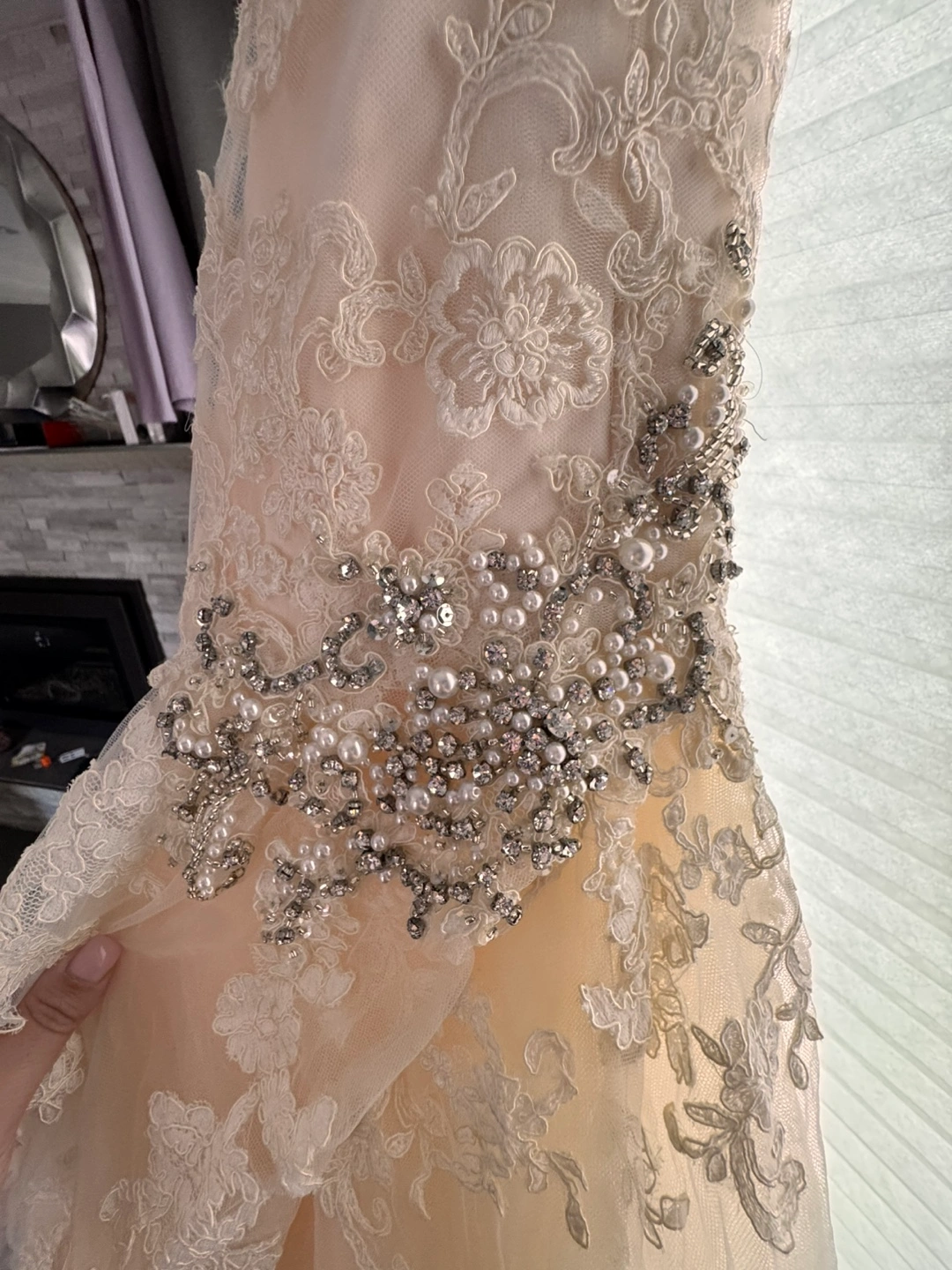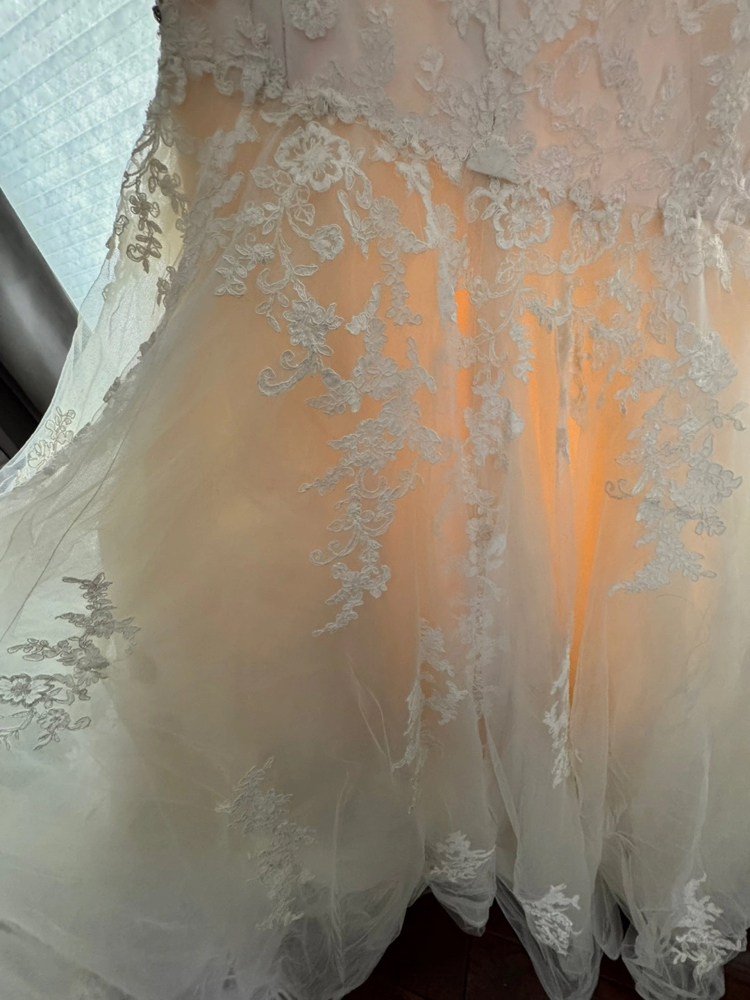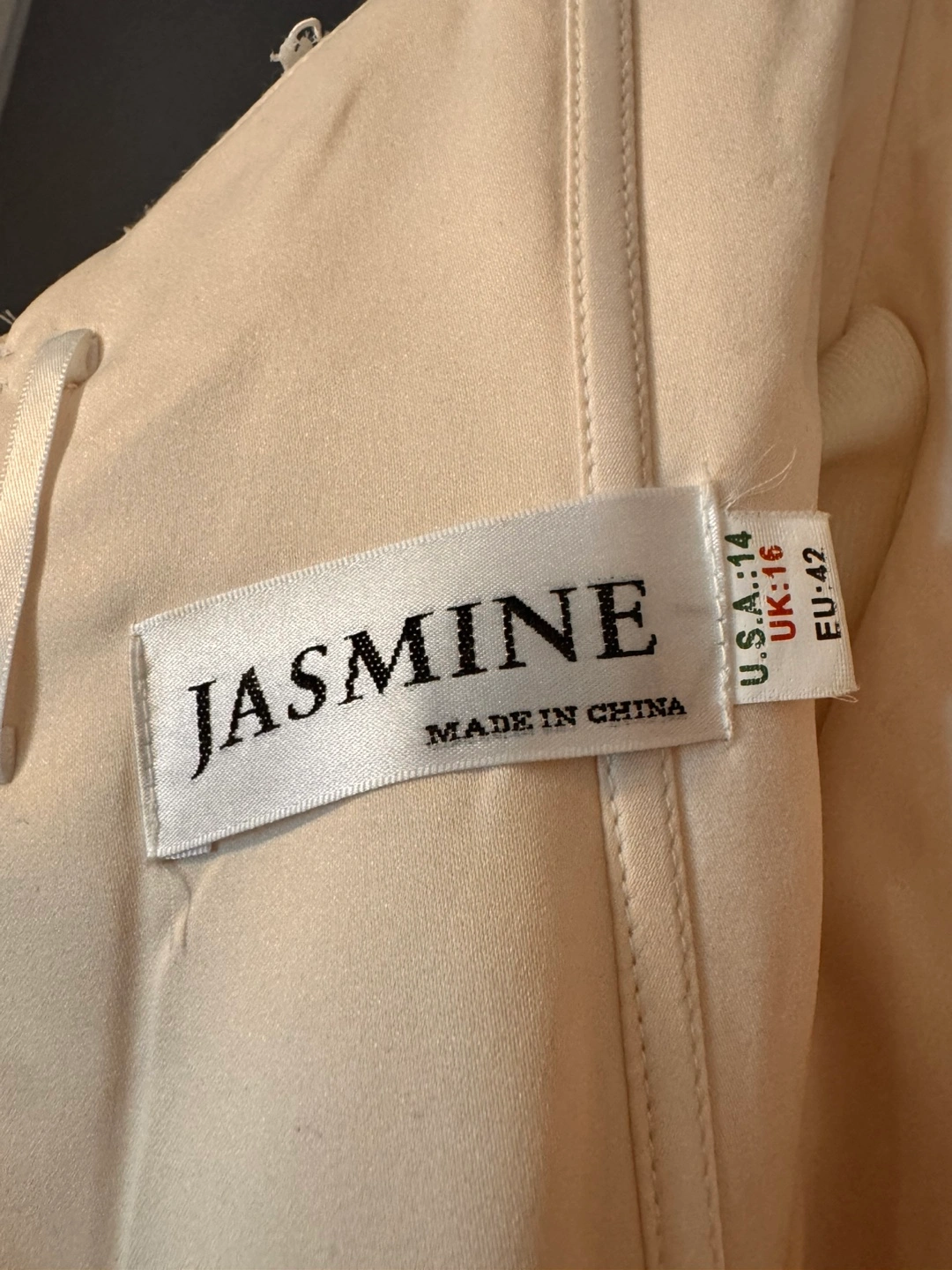 Selling a beautiful Jasmine wedding dress, size 14 (US sizing). It features delicate lace and pearl detailing. Perfect for your special day!