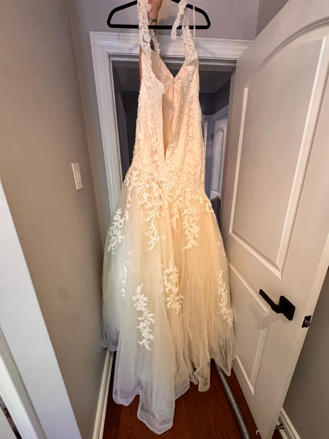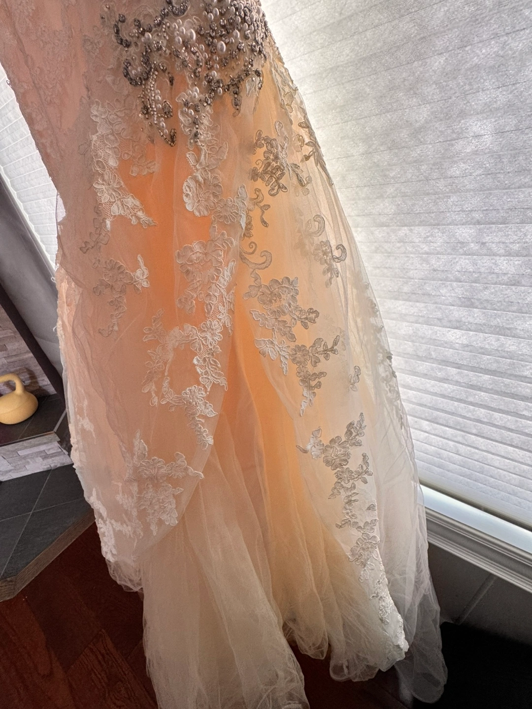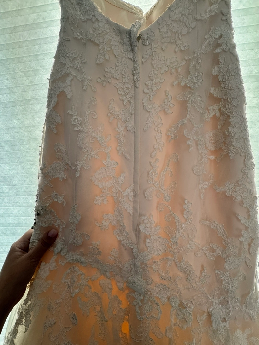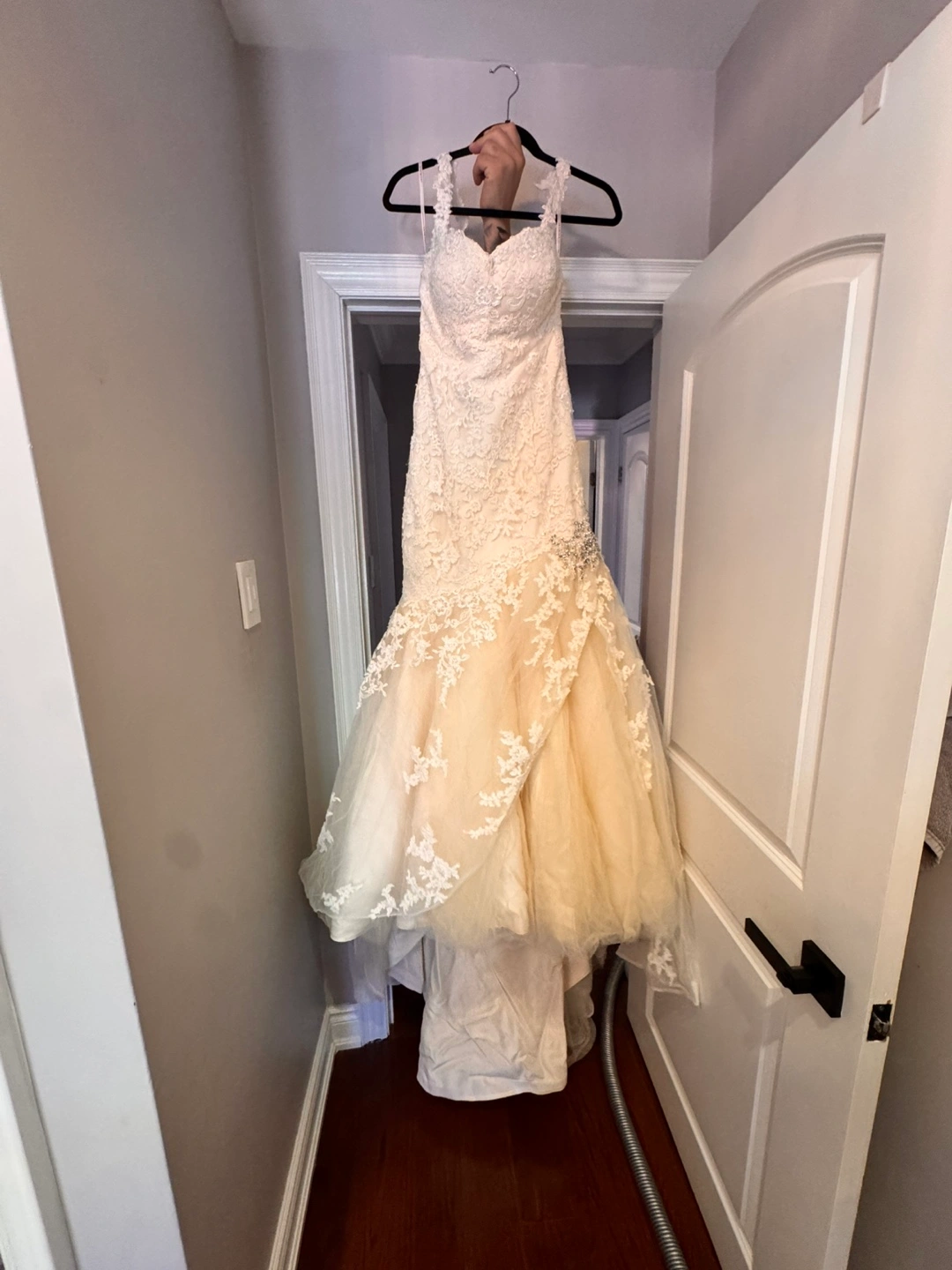 Selling a beautiful Jasmine wedding dress, size 14 (US sizing). It features delicate lace and pearl detailing. Perfect for your special day!