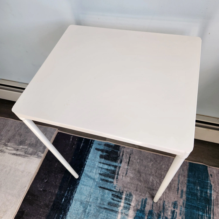 IKEA white metal frame & square table. Perfect for both indoor and outdoor spaces. Easy to assemble and disassemble. Buy 2 for $15.