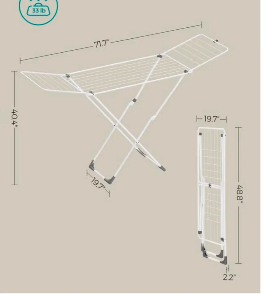 Moving out sale!!! SONGMICS Clothes Drying Rack, Metal Laundry Drying Rack, Foldable, Space-Saving, Free-Standing Airer, with 2 Gullwings, Indoor Outdoor Use, Bed Linen Clothing