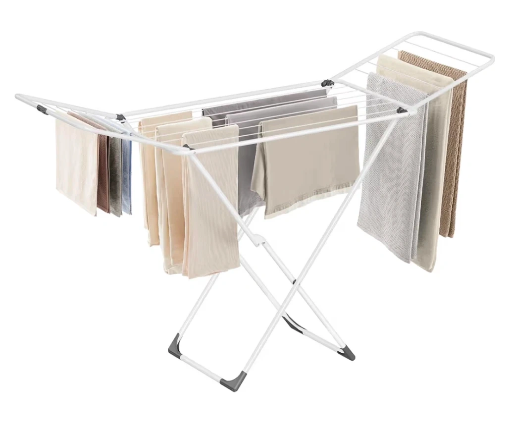 Moving out sale!!! SONGMICS Clothes Drying Rack, Metal Laundry Drying Rack, Foldable, Space-Saving, Free-Standing Airer, with 2 Gullwings, Indoor Outdoor Use, Bed Linen Clothing