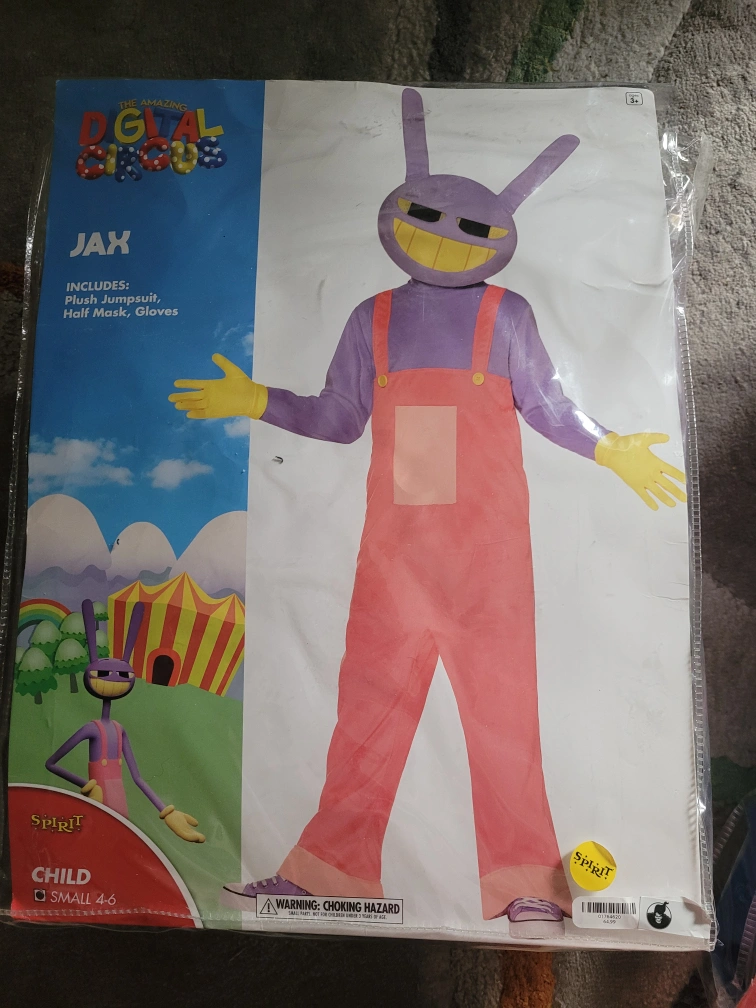 5Selling a Jax costume from The Amazing Digital Circus! It's a child size small 4-6 and includes a plush jumpsuit, half mask, and gloves