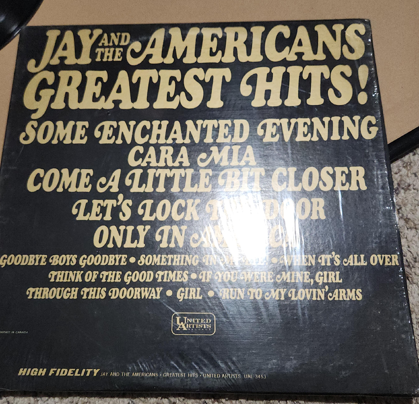 60Selling a vinyl record of Jay and The Americans' Greatest Hits! This record features classics like 'Some Enchanted Evening,' 'Cara Mia,' and 'Come a Little Bit Closer'. A great addition to any vinyl collection!