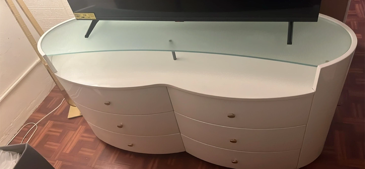 White Curved Dresser with Glass Top
