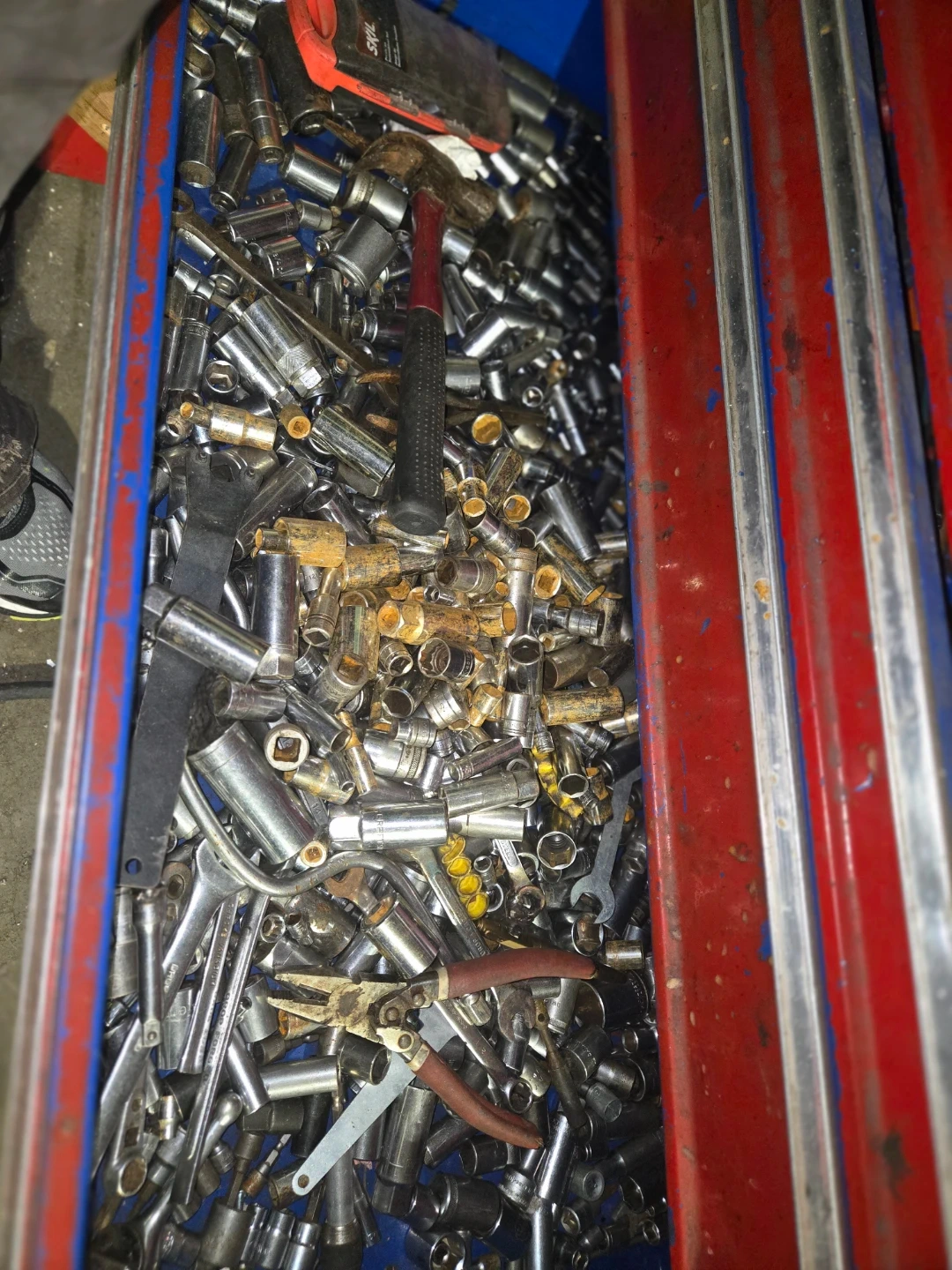 This is a collection of various hand tools, including screwdrivers, wrenches, pliers, and sockets. The tools appear to be from different brands and They're ready for your next project! Let me know what you need thx fcfs.