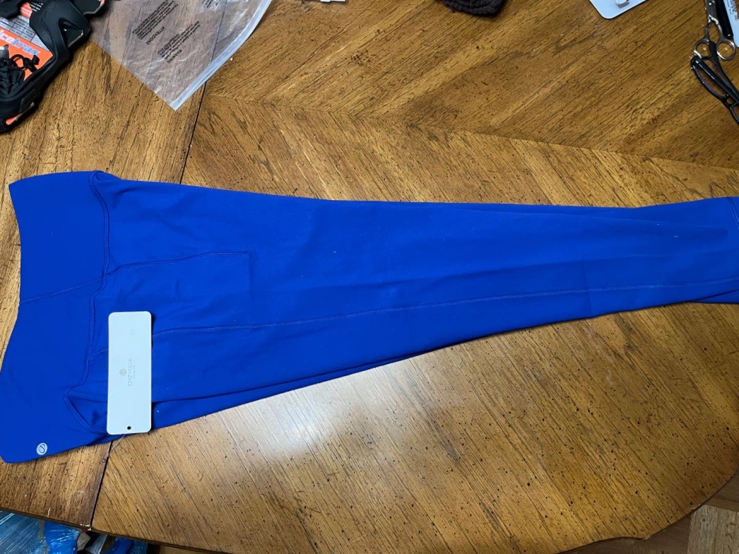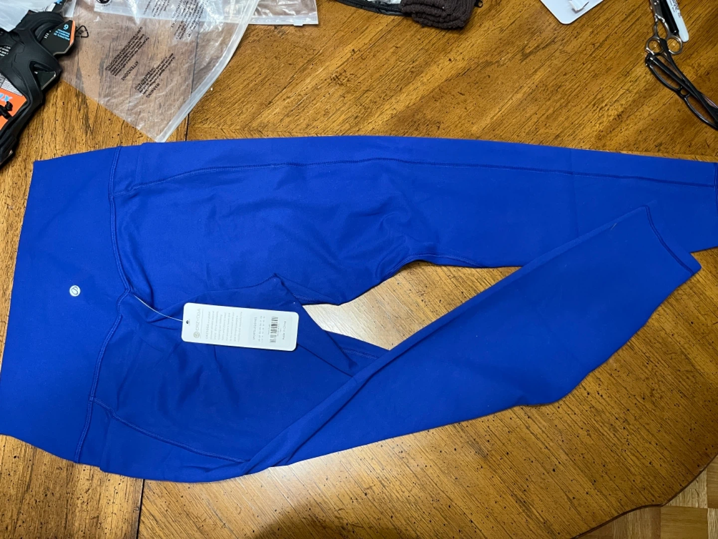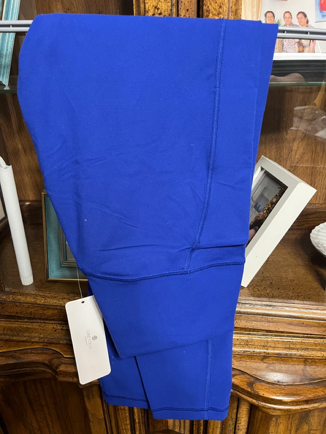 Medium- These CRZ YOGA leggings are a vibrant blue. They're made from a comfortable, stretchy fabric perfect for workouts or everyday wear. The size is medium. You'll appreciate the quality and fit of these athletic pants!