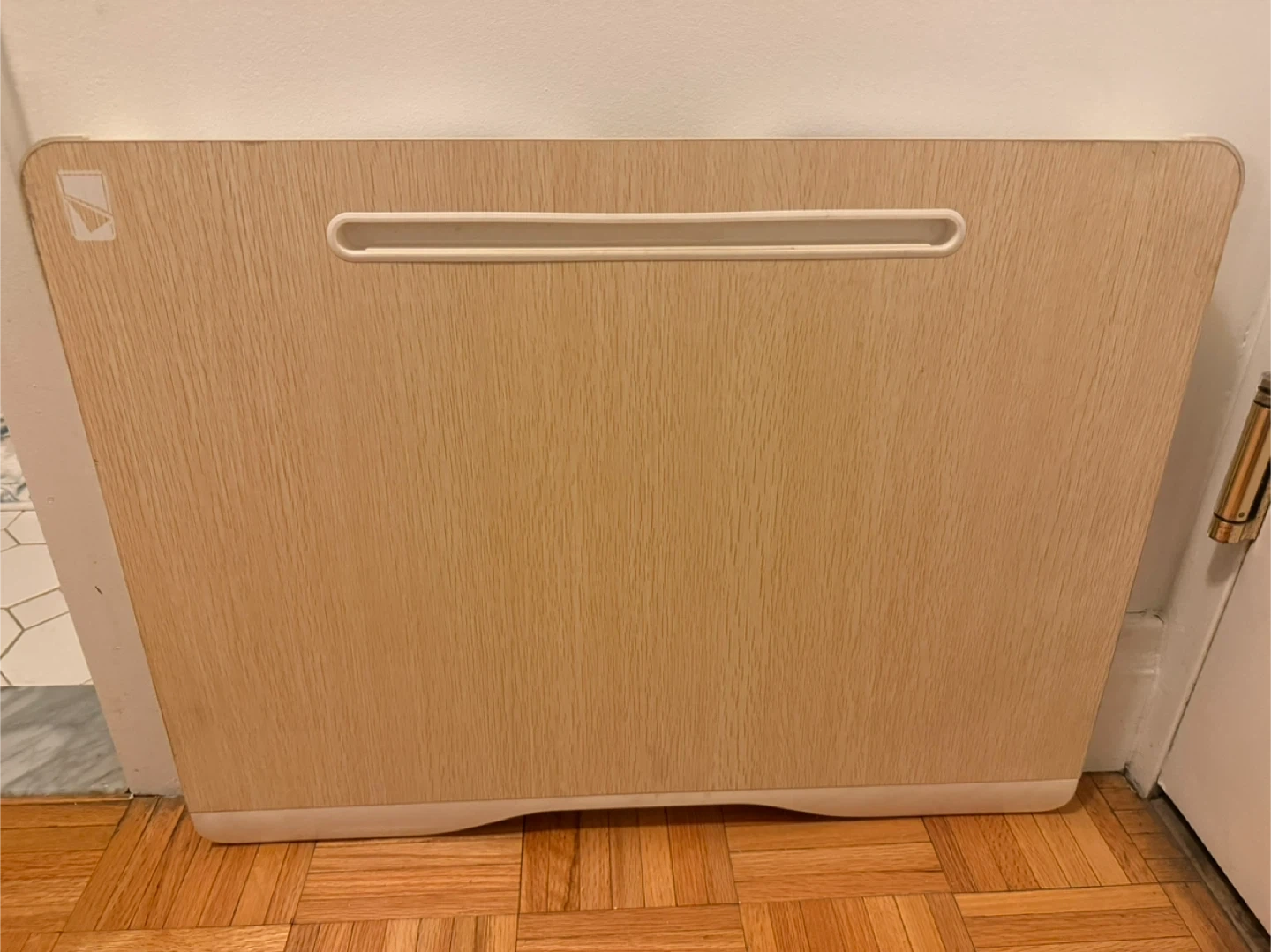 This portable lap desk has a wood-grain finish and a built-in drawer for storage. It folds flat for easy carrying and storage. It's great for use in bed or on the couch!