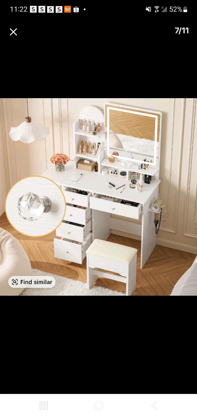 White Vanity Dressing Table Set with LED Mirror and Stool🏆