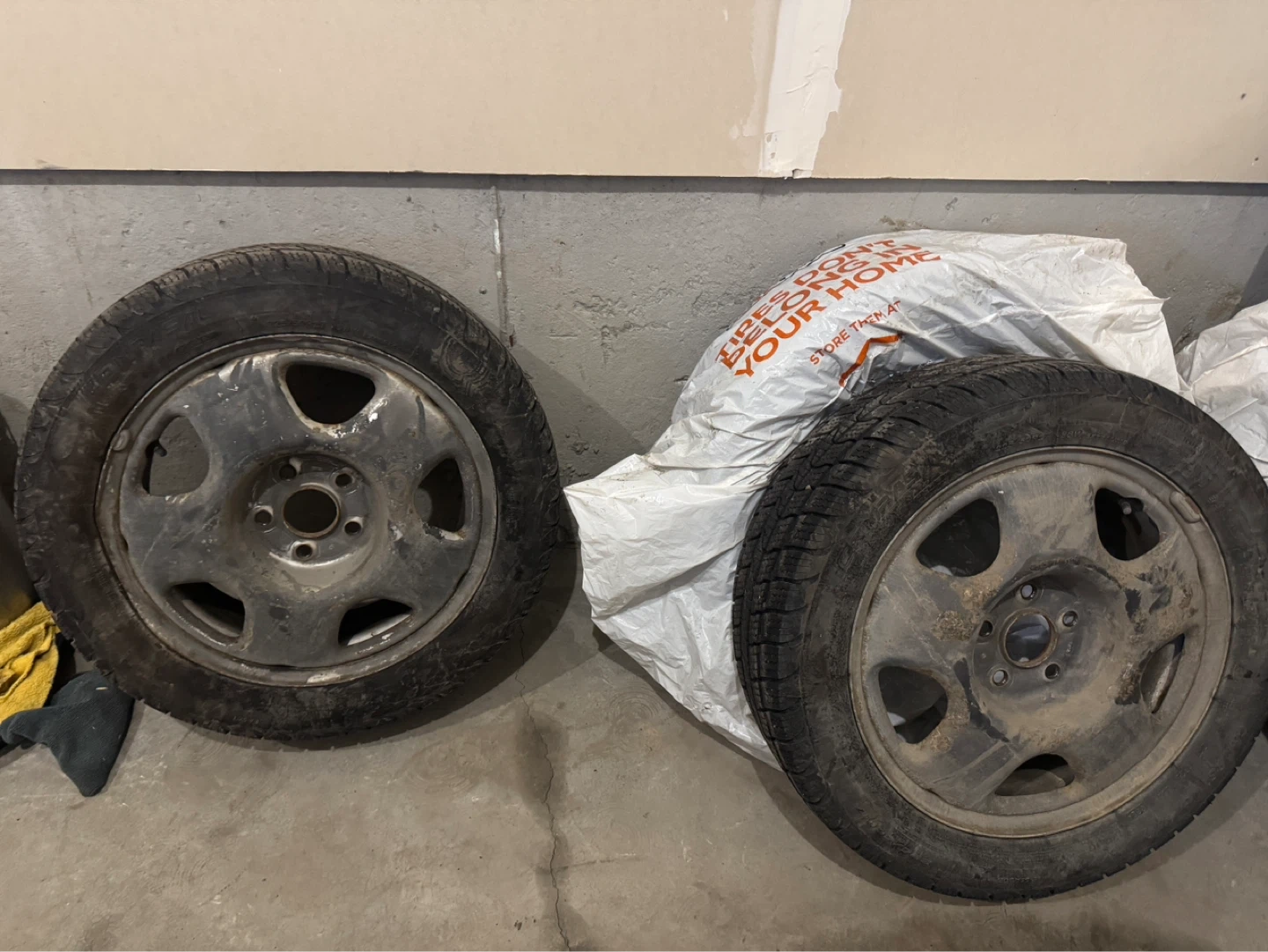 Two tires with rims included. Tire size is 225/50R17 98W. These are suitable for all season. Ready for your vehicle! Just one rim had little dent in it and about 80% tires life left