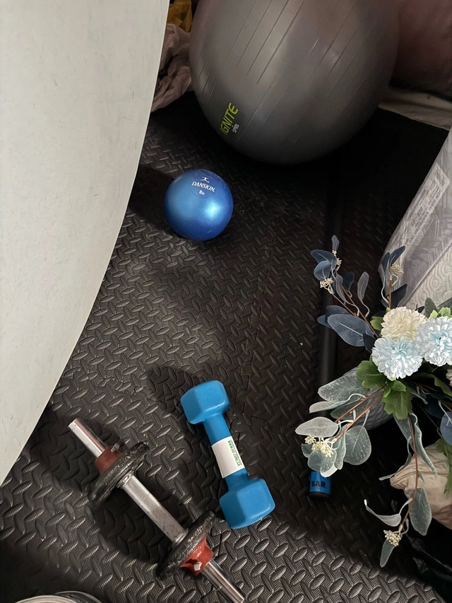 Selling a set of workout equipment including two 10lb dumbbells, an 8lb ball, and an 8lb bar. Also includes an exercise ball. Take it all for $50 or best offer. Thanks!