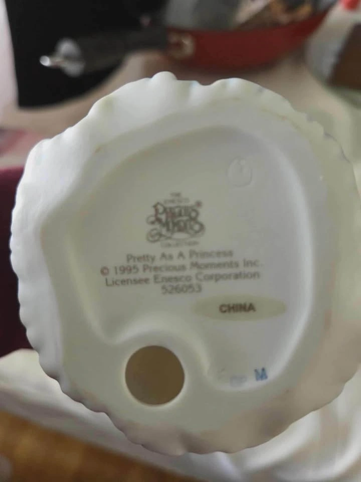 Collectible porcelain figurine set includes Pretty As A Princess, Red Rose Of Love, and a small baby girl figurine. Each piece is hand-painted with soft pastel colors and features the signature teardrop-shaped eyes. Set has a mix of matte and glossy finishes.