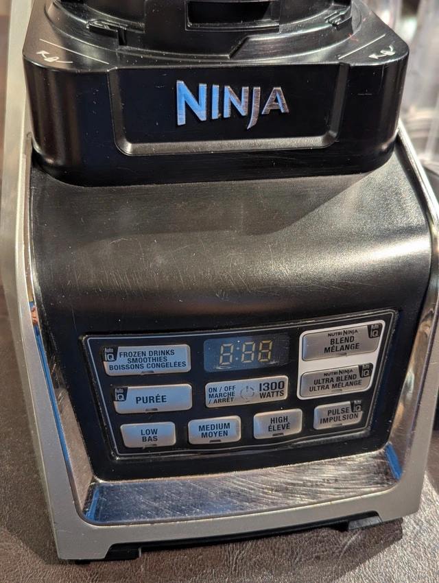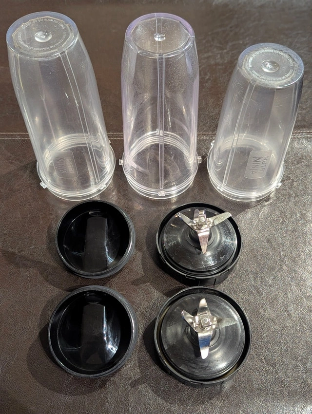 Hi everyone, Available for sale is ONE (1) Ninja Blender 1300W BL641C personal blender in very good to like new condition. Included are TWO (2) newer 32 ounce blender cups (3 total), TWO (2) newer lids, and TWO (2) newer blades. This blender is very powerful (but known to be loud) and if you respect the cup capacity limit and blend liquids thicker than water, you will have NONE of the extremely minor rumored leaking issues. Gently used, and thoroughly cleaned. From a home with NO smoking, NO pets, and NO mold. Works as it should and I'm selling it only because I am downsizing. Meet in West GTA, flexible days and times. Cash only, no trades please.