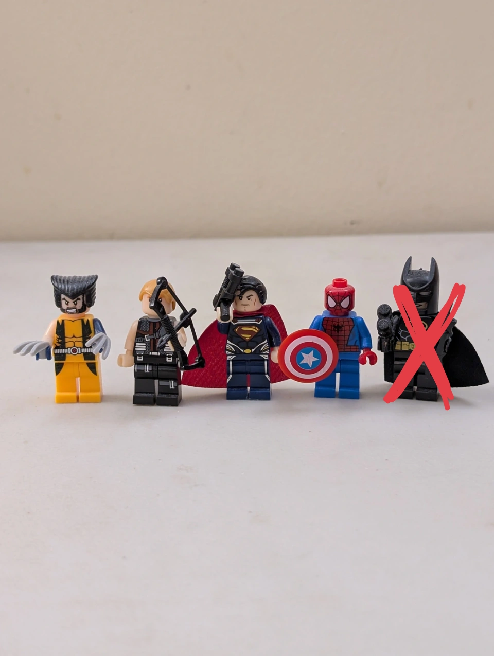 Buy a real LEGO minifig (picture 1-5) → grab a fake one for free (picture 6-7)