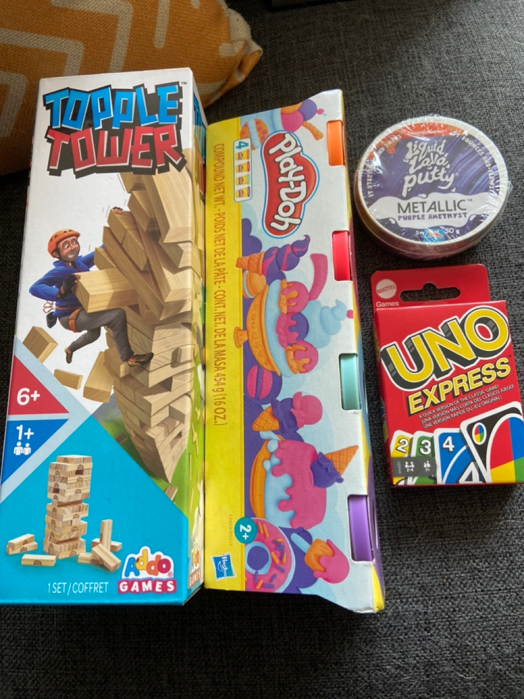 Kids Games Bundle: Topple Tower, Play-Doh, Uno Express