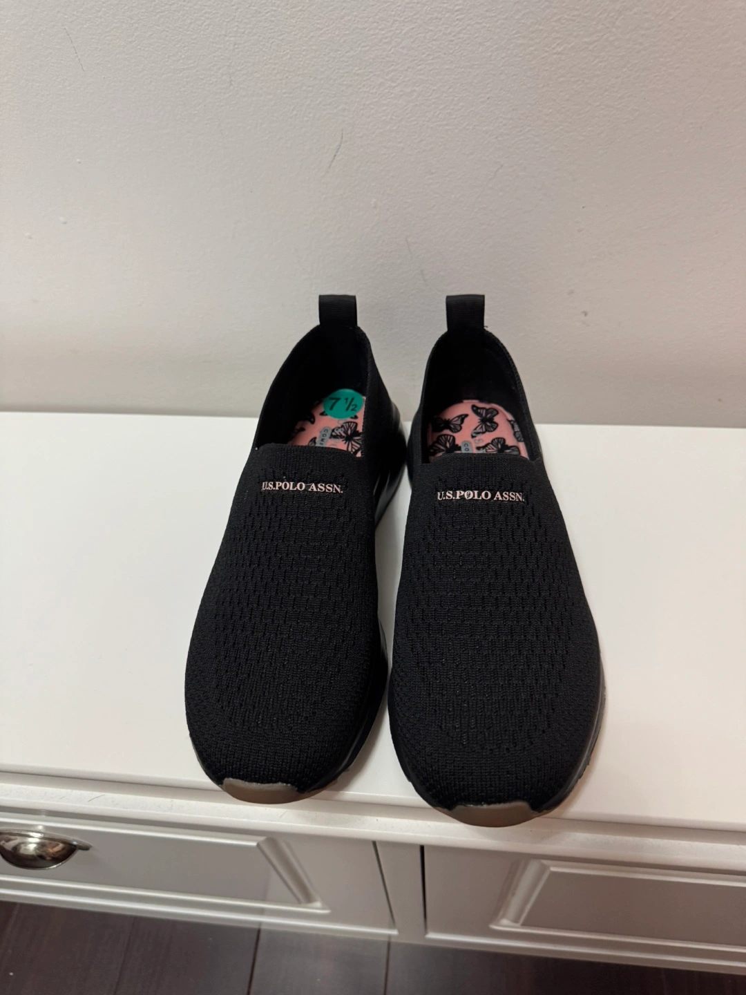These are a pair of black slip-on shoes from U.S. Polo Assn. They're in great shape and a size 7.5. Perfect for everyday wear! This is new . Pick up at Steeles & Bathurst area