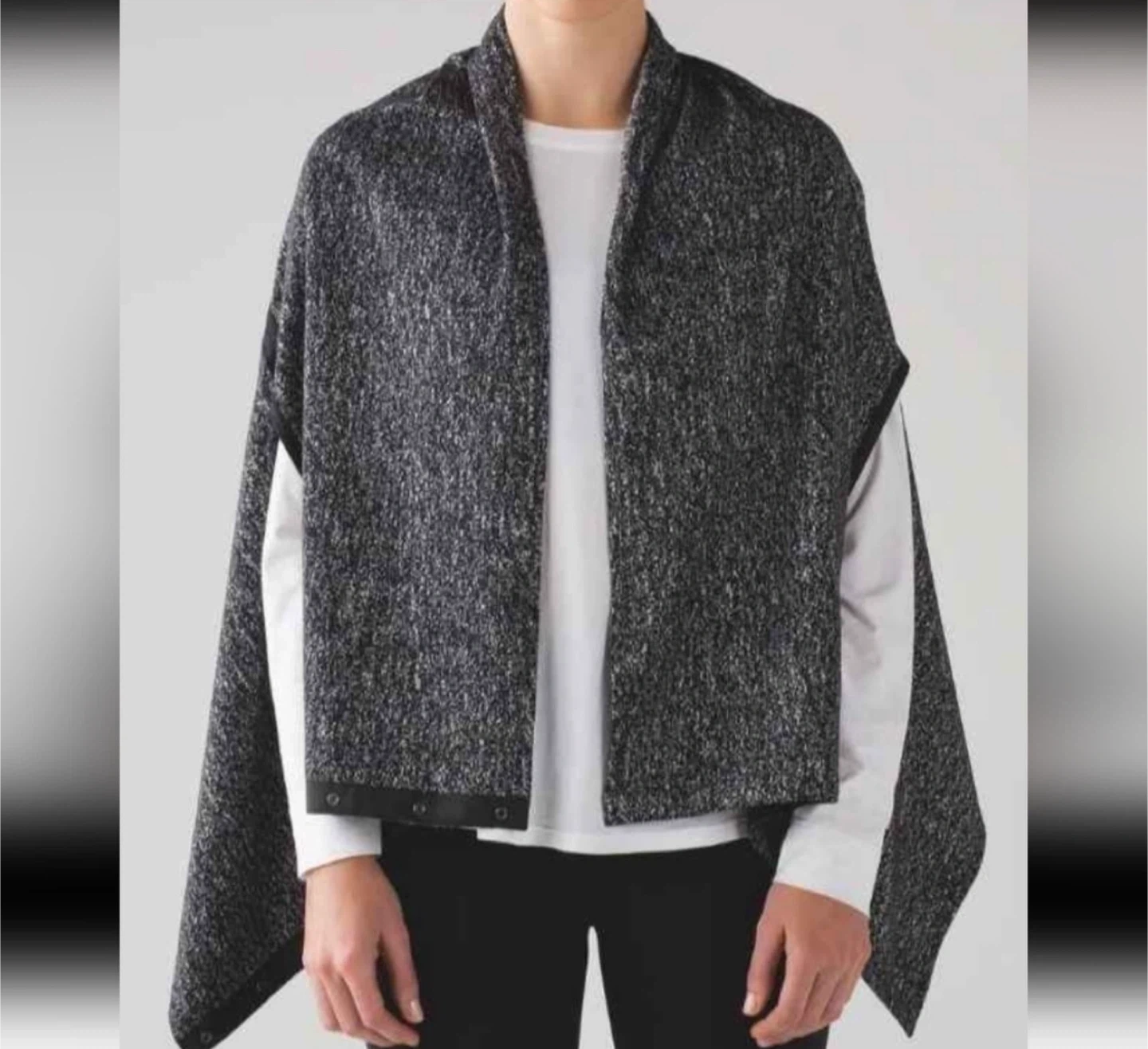 Buy & SellLululemon Poncho WrapLululemon Poncho Wrap$40Lululemon poncho wrap in a black and white speckled knit. Features snap closures on the sides. Perfect for layering during cooler weather!ConditionLike newBrandLululemonWHERE TO MEETCheck LocationView MapSELLERverifiedShellCentral Lonsdale893 reviews0 chats·0 favorites·3 viewsSEND CHAT TO SELLERHi Shell! I’m interested in your listing.Hi Shell! I’m interested in your listing.Get the Karrot app to chatSign In to chat