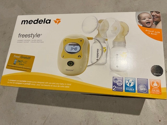 Medela Freestyle Hands-Free gives you the flexibility to pump anytime anywhere. The rechargeable pocket-sized pump and wearable collection cups keep your hands free for multi-tasking. Ultralight, wearable collection cups (2.7 oz each) hold 5oz of breastmilk each and are designed to sit discreetly in your bra. Freestyle Hands-free mimics baby’s natural sucking rhythm. Research-based hands-free collection cups are designed to avoid localized compression and maximize milk flow. Connect to the Medela Family app to plan and track your feeding schedule. Easy to assemble, dishwasher safe, and simple to clean. Condition: Used - Good. For Sale By: Owner.