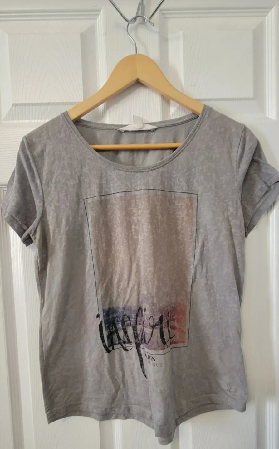 Grey graphic t-shirt from H&M. Features the word "Inspire" printed on the front. Made of a soft cotton blend.
