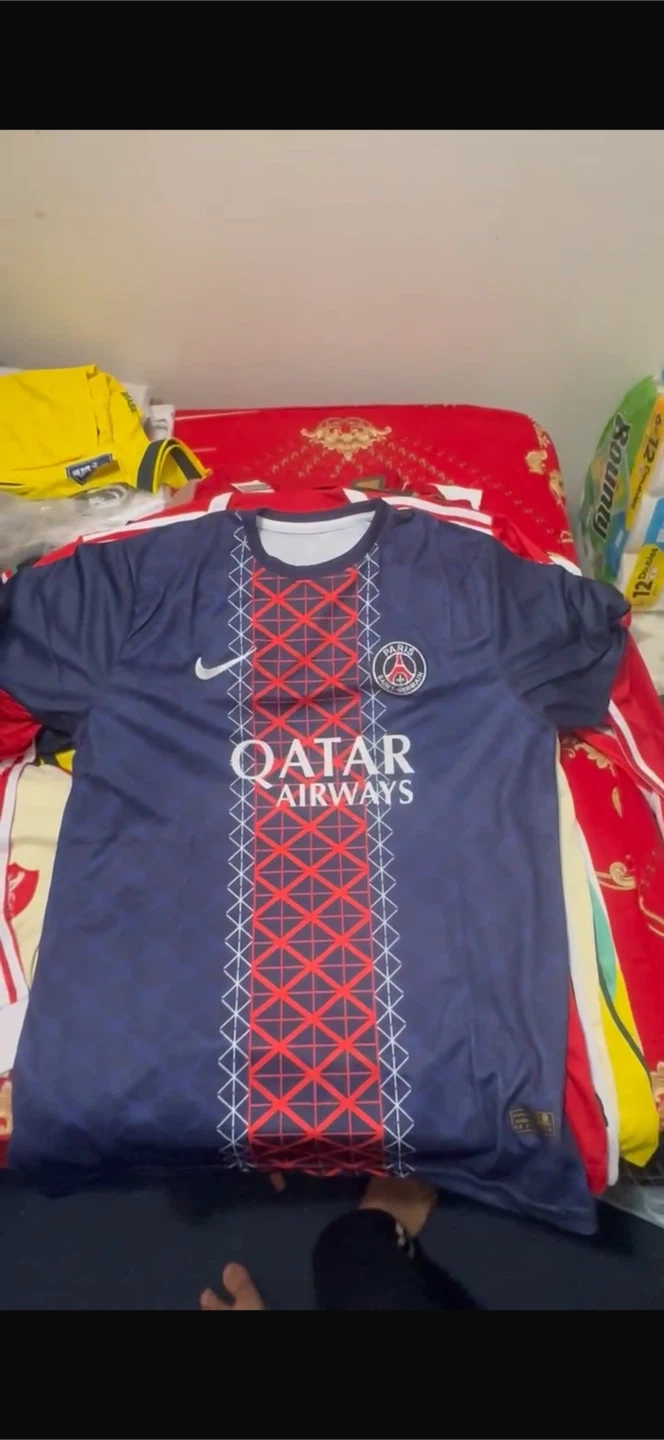 This is a Paris Saint-Germain 2022/23 Stadium Third Jersey. It features the Qatar Airways sponsor. It's a size medium.