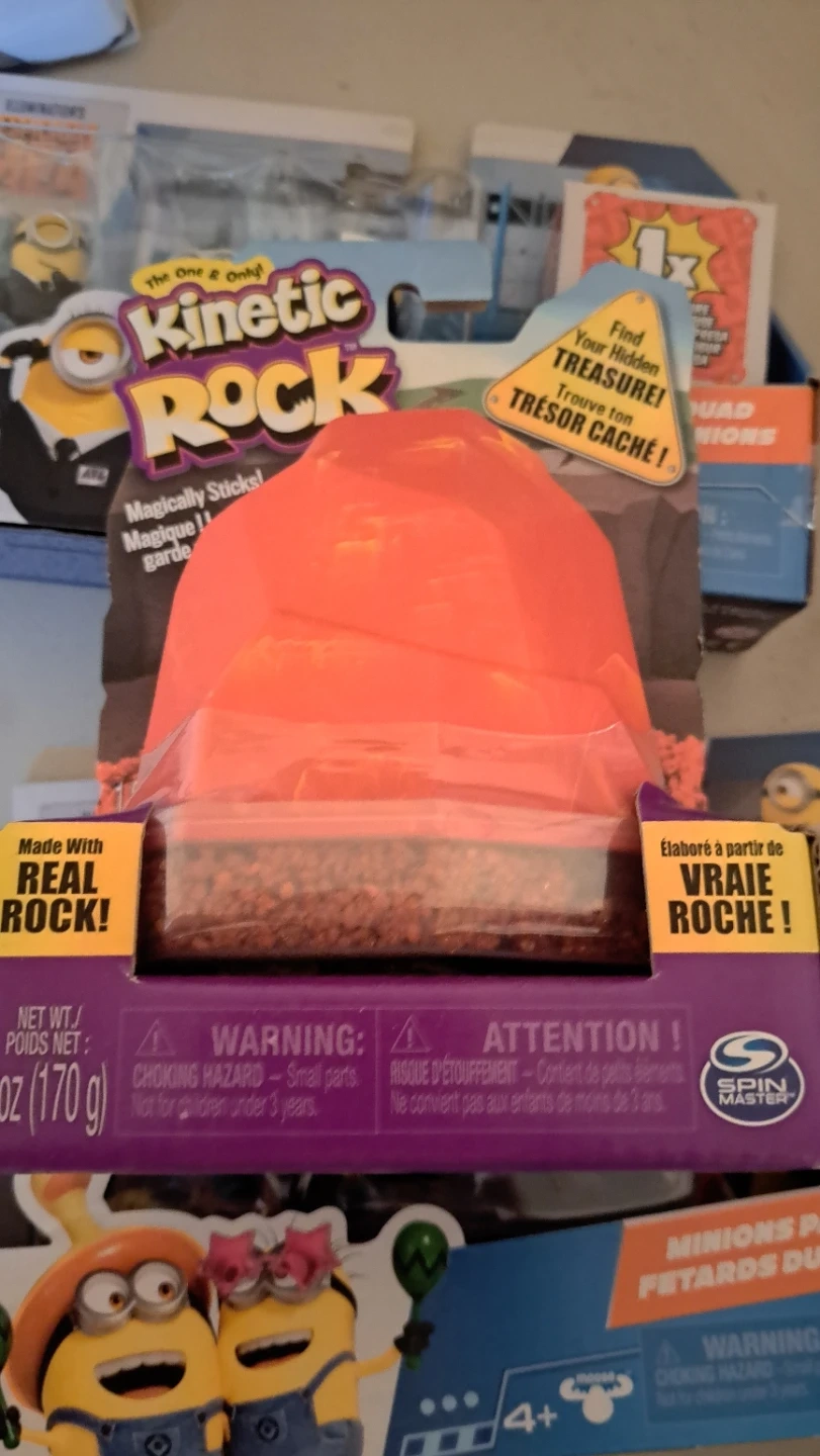 Includes one 6 oz (170 g) container of Kinetic Rock. It's made with real rock and magically sticks together. Find your hidden treasure!