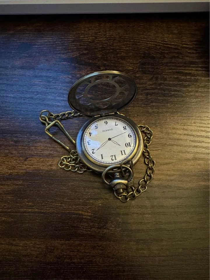 Ornate vintage style pocket fake watch for costume. Has a cool antique bronze tone casing with a detailed design. Quartz movement so it keeps good time. Comes with a matching chain. This is a fake watch for costume.
