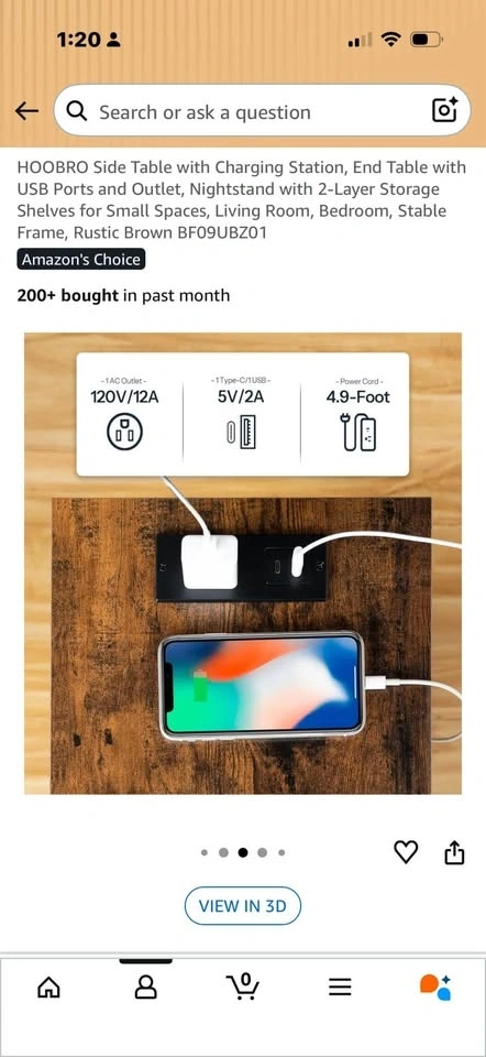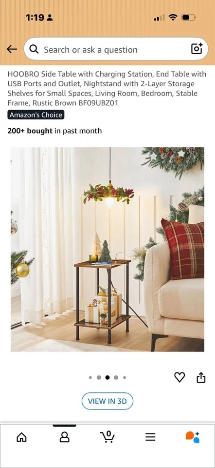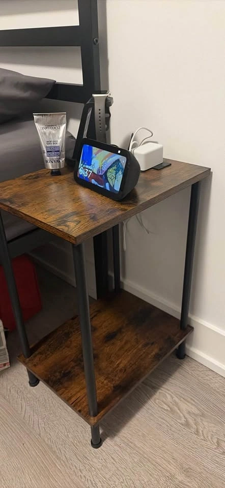 Stylish 2-tier side table. Has a rustic wood-look top and lower shelf. Black metal frame. Great as a nightstand or for living room.