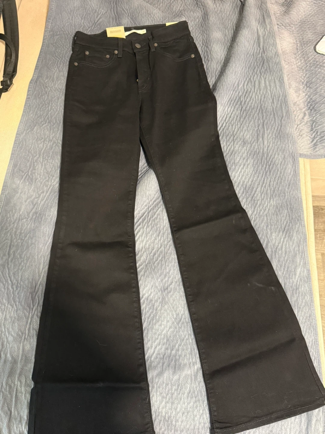 These are brand new black flare jeans from Levi's. They're a size 27 with a 32 inseam. These jeans are made with a stretch denim blend for comfort.