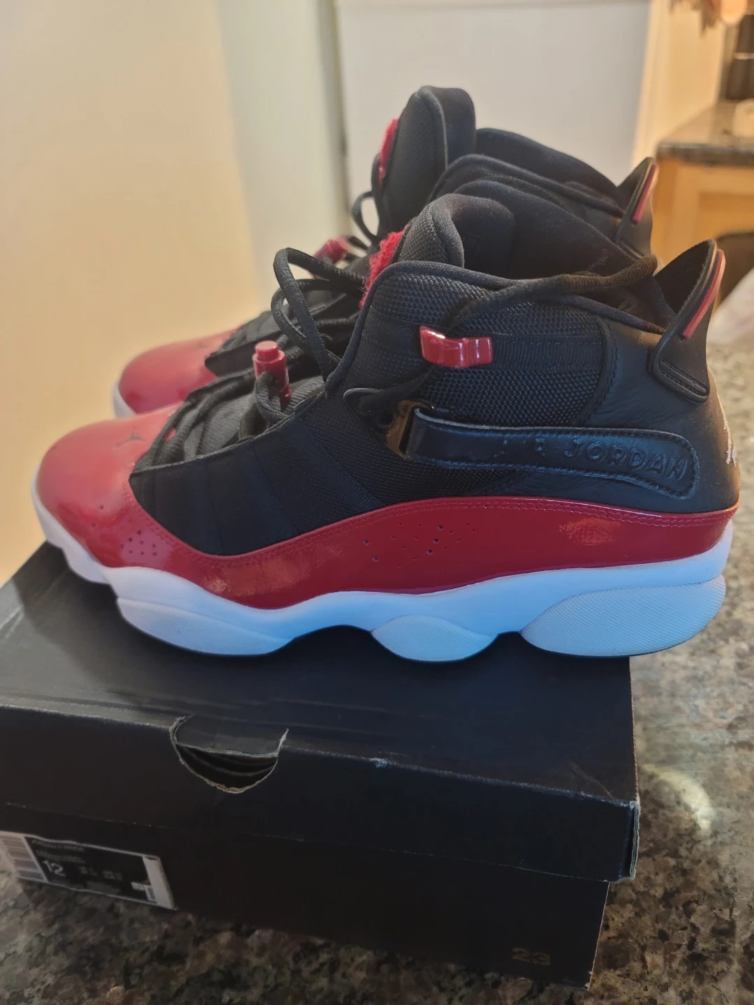 Men's Jordan 6 Rings sneakers in a black and red colourway. Size US 12 (UK 11, EUR 46). Includes original box. Never worn. P/U only.