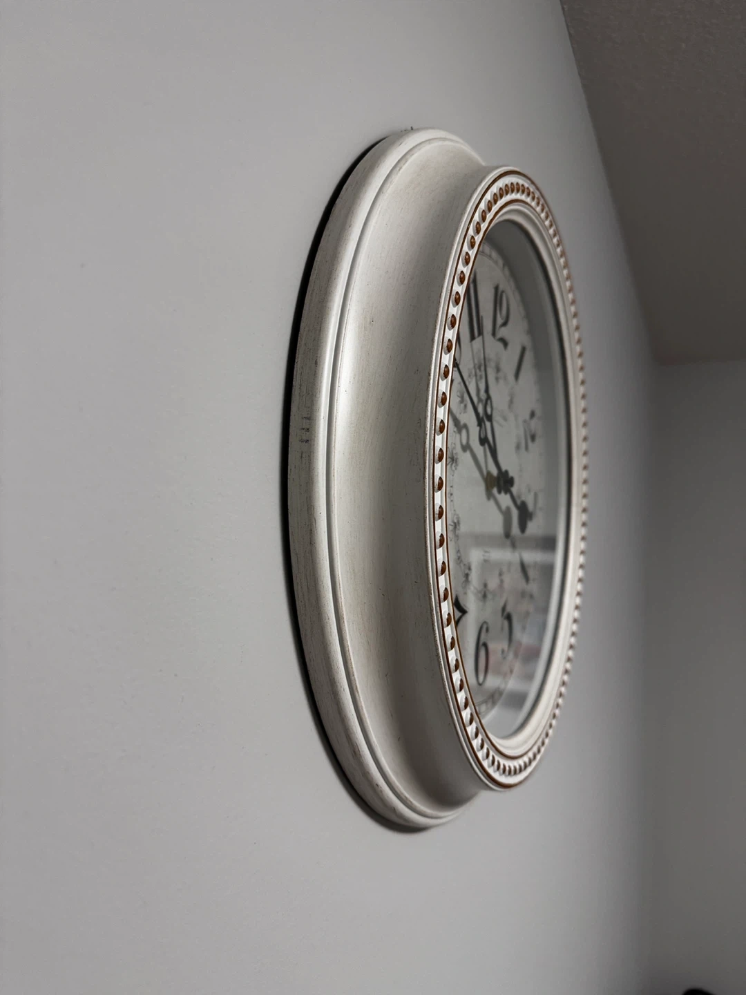 Antique-style wall clock in excellent, like-new condition. It adds a classic touch and looks great in a bedroom, living room, or any room in the home. Clean title no scrathes comes from smoke free and pet free home.