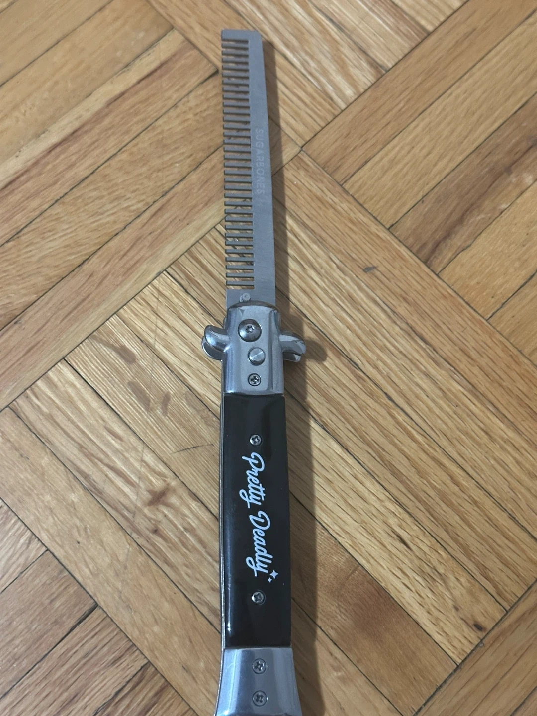 Buy & SellPretty Deadly Switchblade CombPretty Deadly Switchblade Comb$20It's a switchblade comb with a black handle. The blade is a metal comb. It's a fun novelty item!ConditionNewWHERE TO MEETCheck LocationView MapSELLERGillWoodbridge856 reviews0 chats·2 favorites·87 viewsSEND CHAT TO SELLERHi Gill! I’m interested in your listing.Hi Gill! I’m interested in your listing.Get the Karrot app to chatSign In to chat